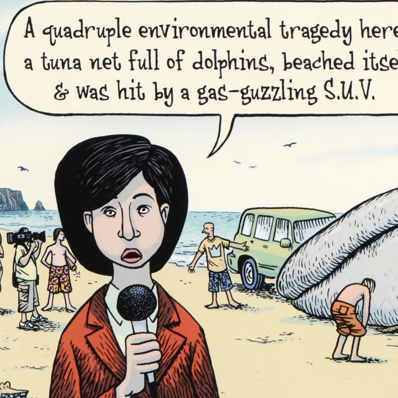 Enter a surreal and satirical world of twisted imagination and award winning creativity. "Quadruple Tragedy" is a limited edition giclee on paper by Dan Piraro, creator of the critically acclaimed and award winning comic strip, Bizarro! This piece is framed, numbered and hand signed by the artist! Includes Certificate of Authenticity! Measures approx. 22" x 15" (with frame), 15" x 8" (image).