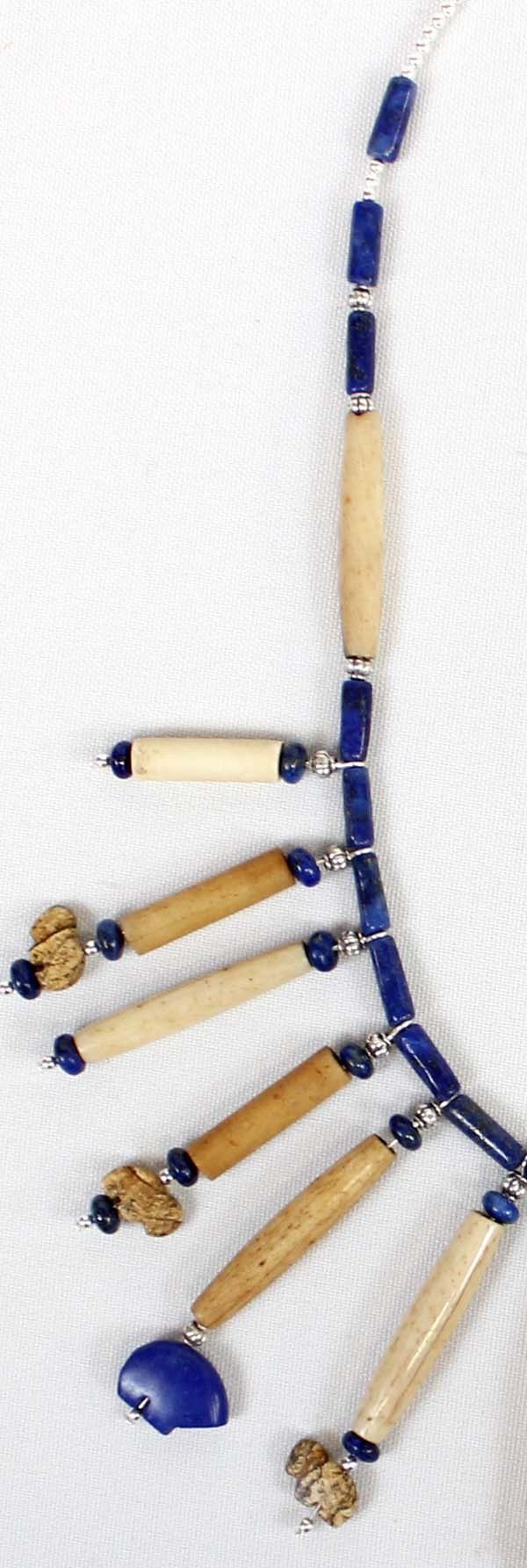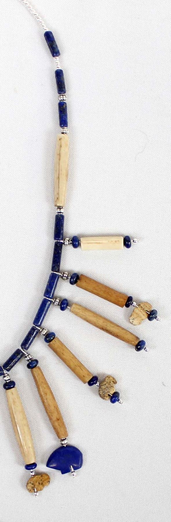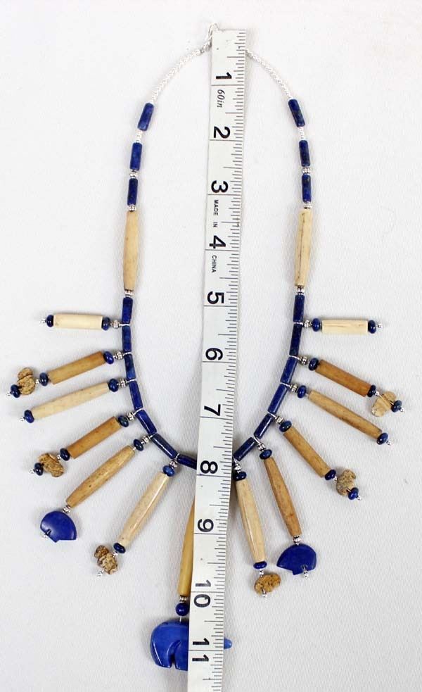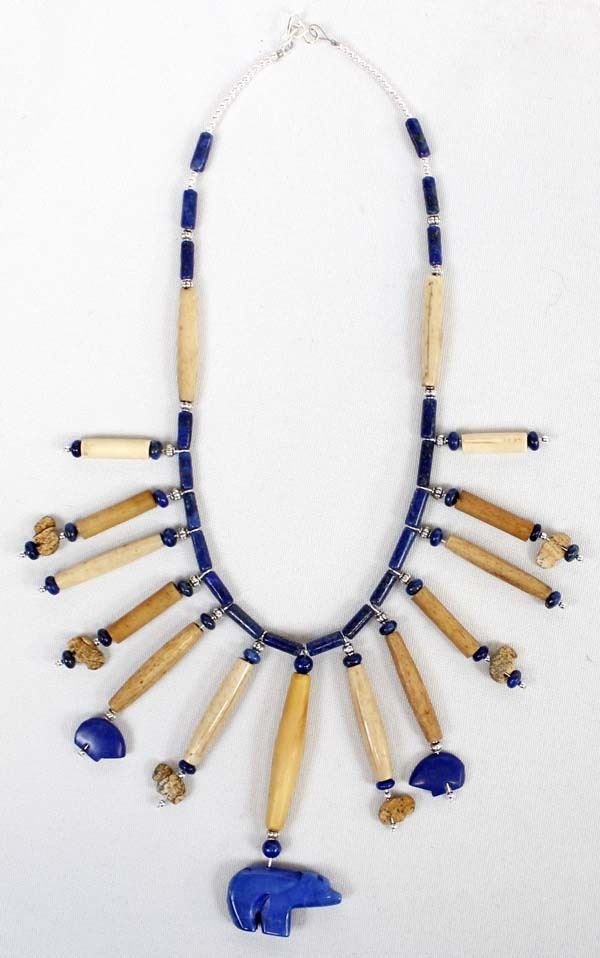 Quail Ridge Studios One of a Kind Hare Bone & Lapis Lazuli Bear Fetish Pendant Necklace, features small jasper bear fetishes, lapis tube beads and rondelles with small sterling silver beads, measures 18''L end to end, The magic of the Desert Southwest is timeless in its display of open landscapes, sunrise and sunset colors with infinite possibilities of artistic expression. The design studio of Quail Ridge was founded on these possibilities, forging an endless variety of earthen gems to their metallic counterparts. The artist, Larry McLellan, designs jewelry contemporary in style, while maintaining elements of native designs.