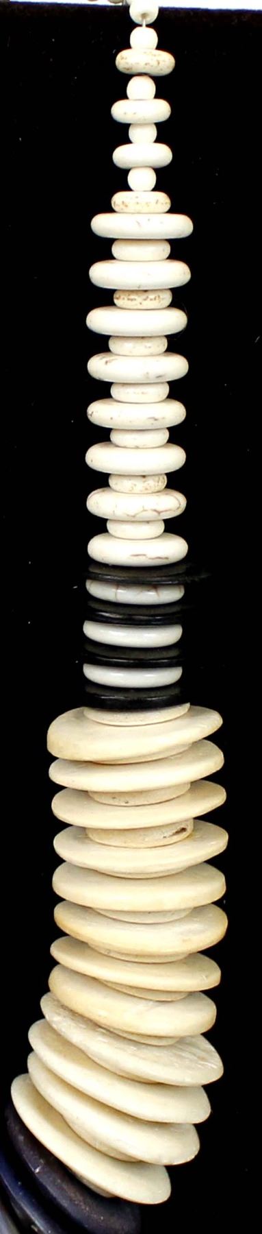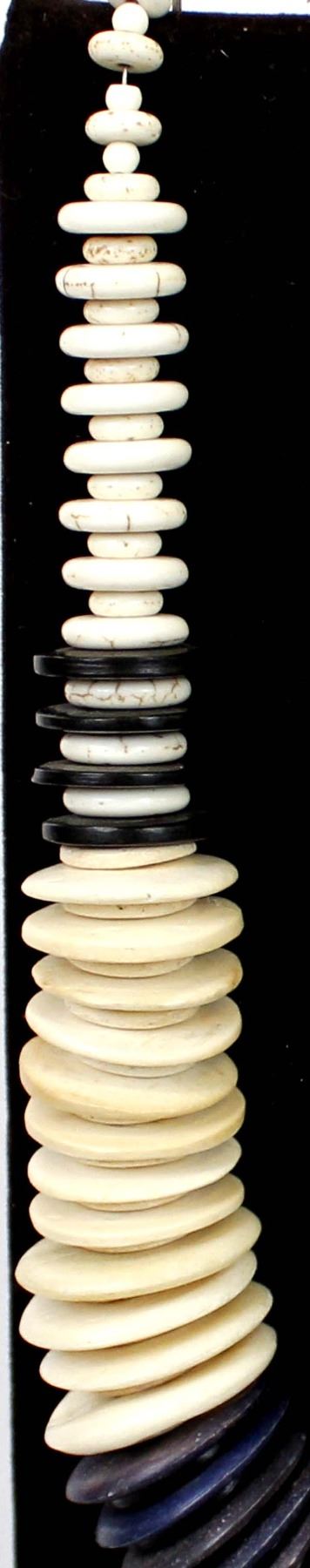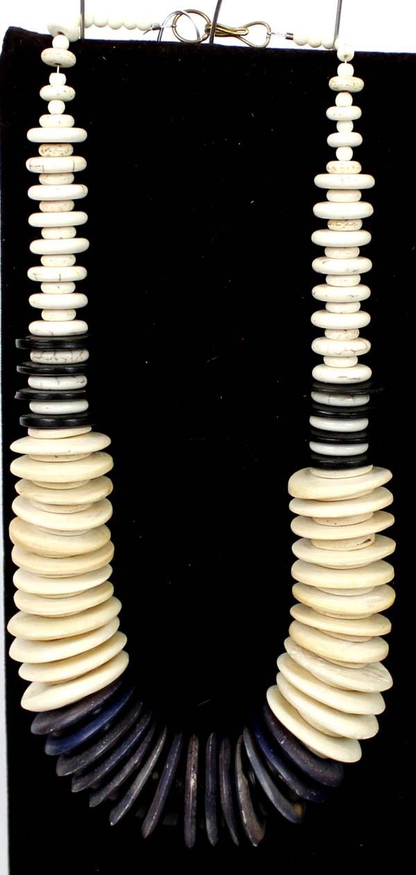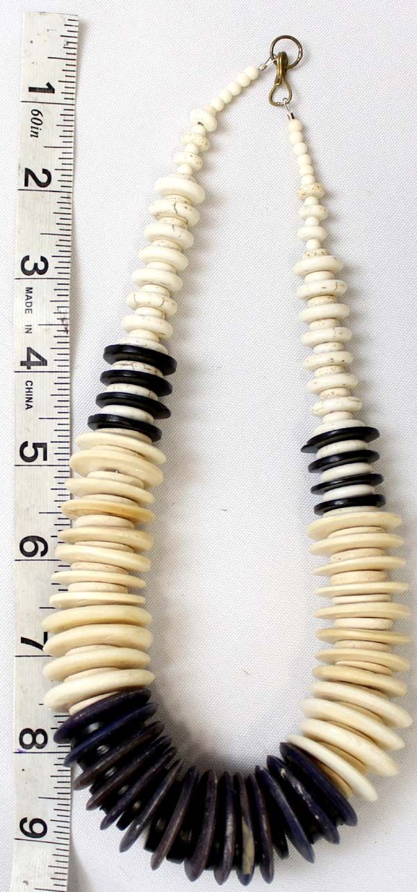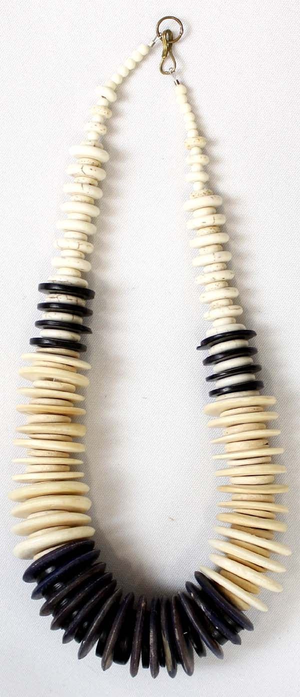 One of Kind Quail Ridge Studios Graduated Bone Bead Necklace by Larry McLellan of Silver City NM, measures 18''L end to end, largest bead measures 1 1/8''D, The magic of the Desert Southwest is timeless in its display of open landscapes, sunrise and sunset colors with infinite possibilities of artistic expression. The design studio of Quail Ridge was founded on these possibilities, forging an endless variety of earthen gems to their metallic counterparts. The artist, Larry McLellan, designs jewelry contemporary in style, while maintaining elements of native designs.