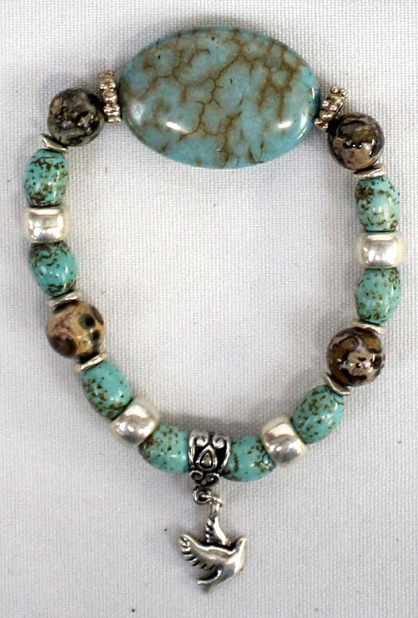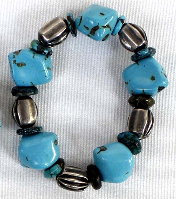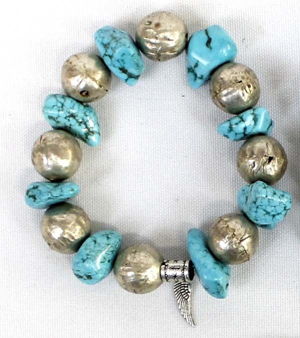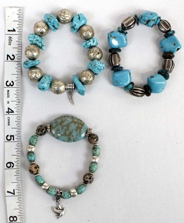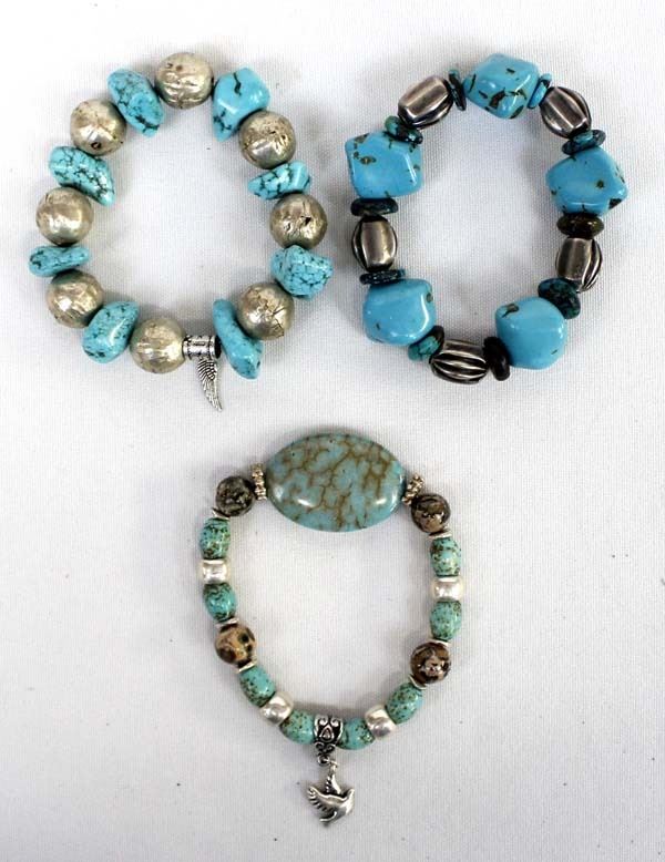 3 Quail Ridge Studios One of a Kind Southwestern Turquoise Stretch Bracelets by Larry McLellan, embellished with metal and stone beads, The magic of the Desert Southwest is timeless in its display of open landscapes, sunrise and sunset colors with infinite possibilities of artistic expression. The design studio of Quail Ridge was founded on these possibilities, forging an endless variety of earthen gems to their metallic counterparts. The artist, Larry McLellan, designs jewelry contemporary in style, while maintaining elements of native designs.