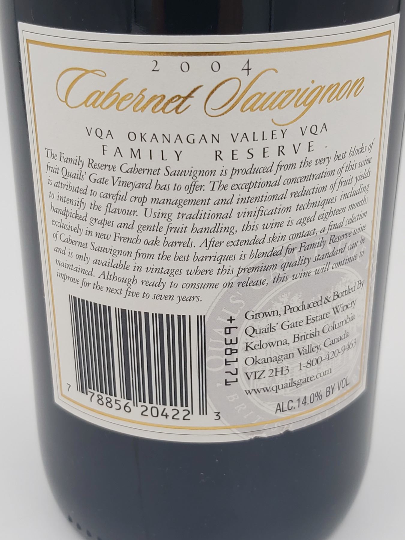 Quails Gate Winery Okanagan Valley Cabernet Sauvignon 2004 14.0%