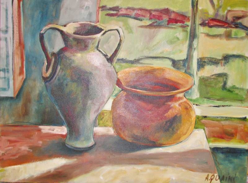 Alicia Quaini | Title of Art: Still Life Vase (Stretched) | Medium: Original Acrylic Painting Hand Signed by the Artist on Canvas | Unframed Size: 30 x 40 inches | Framed Size: Stretched | Value: $ 4000 | ArtForSale.com