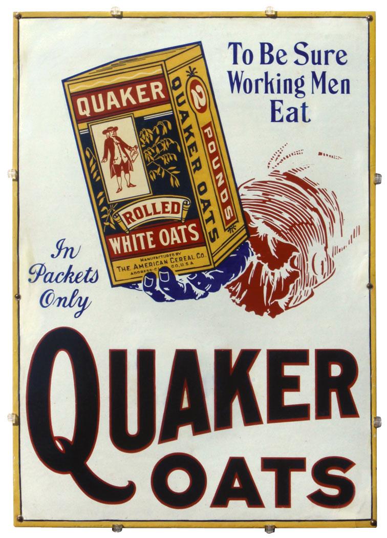 Quaker Oats porcelain sign, great 6-color sign w/box graphics, a beautiful sign that’s been prof res