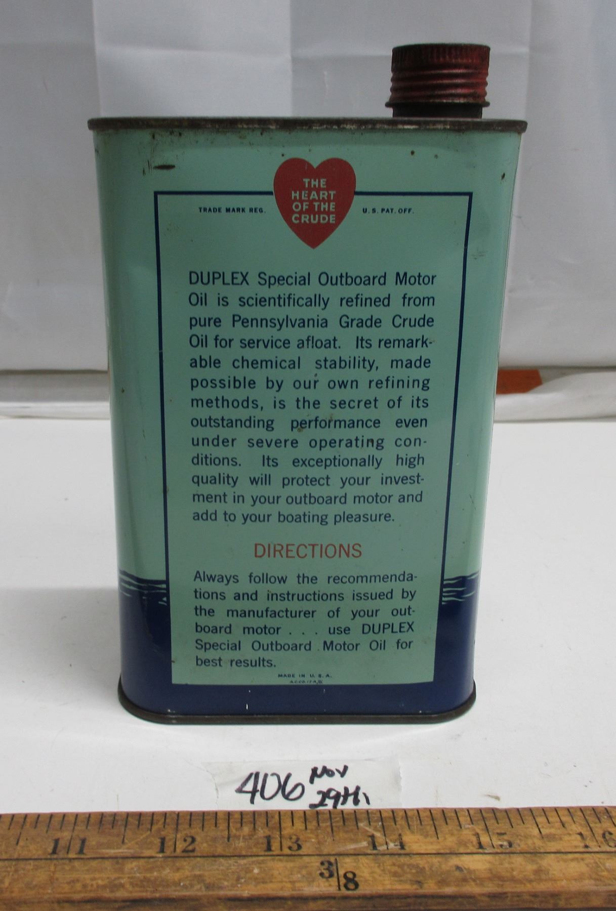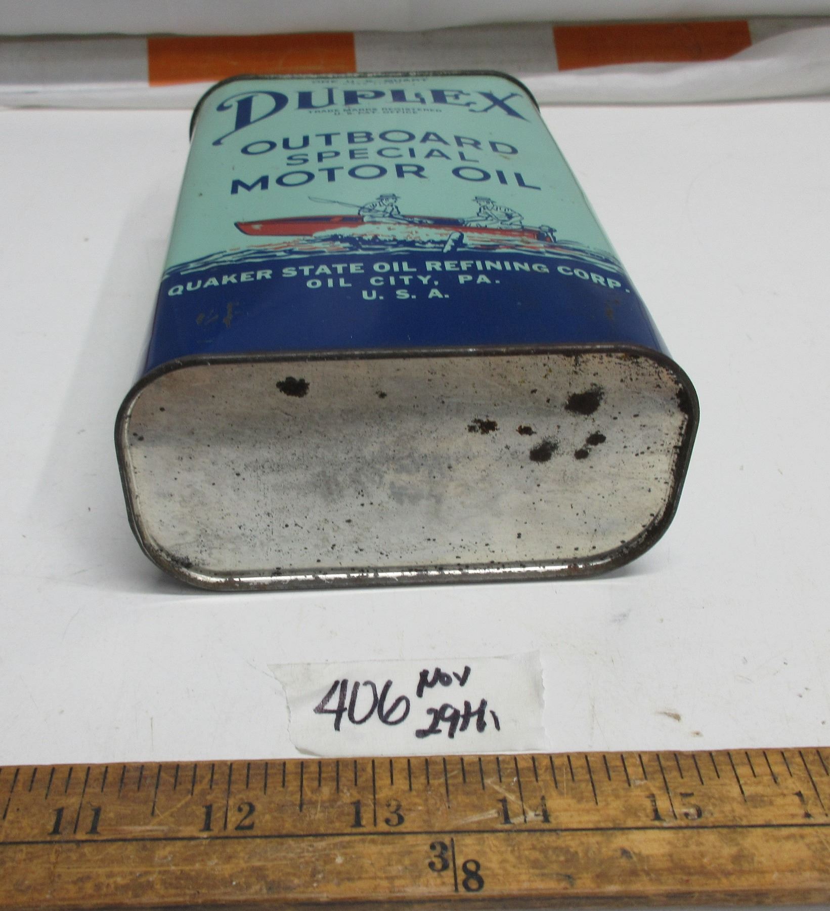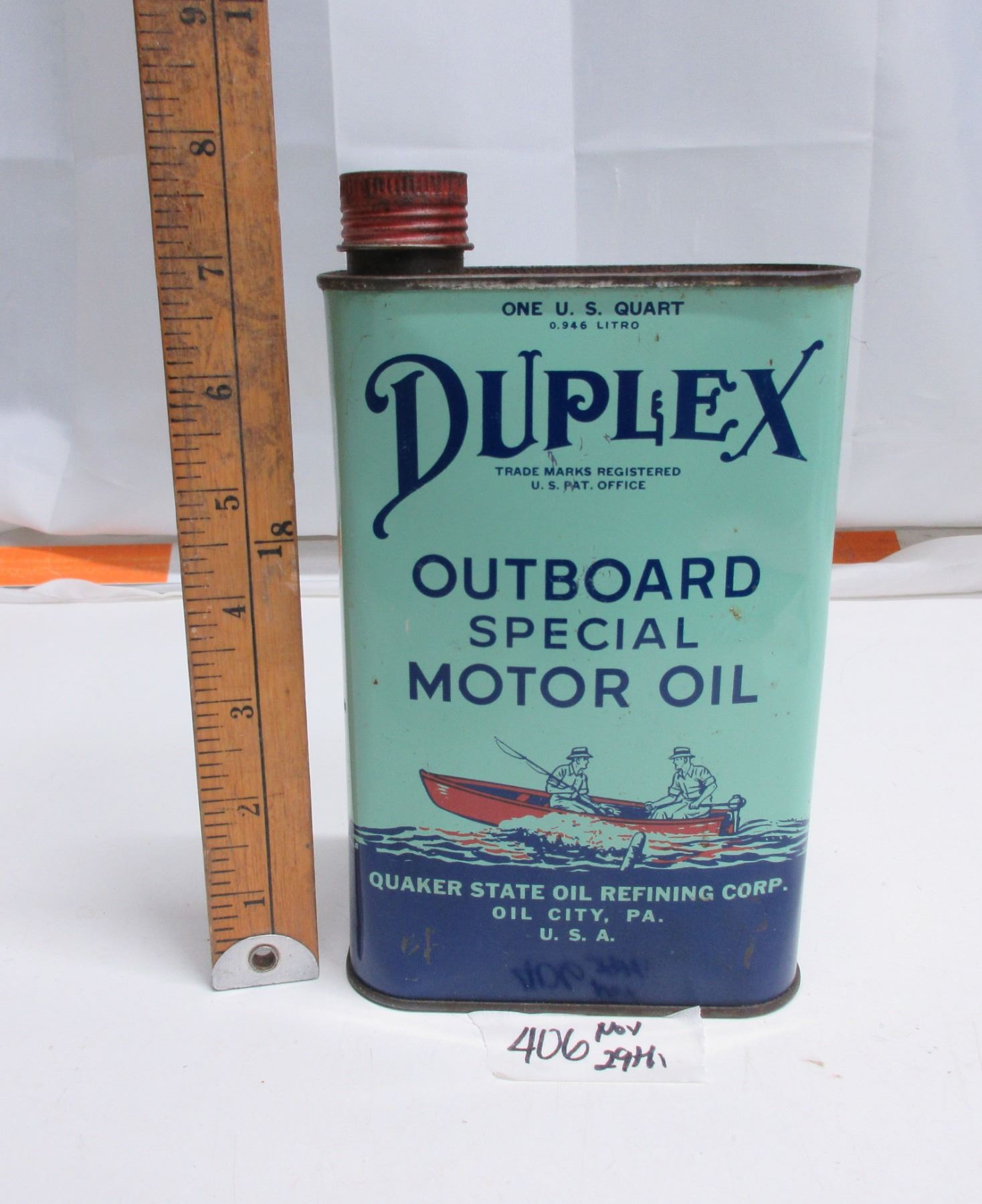 Quaker Stake (Duplex) 1quart outboard oil tin