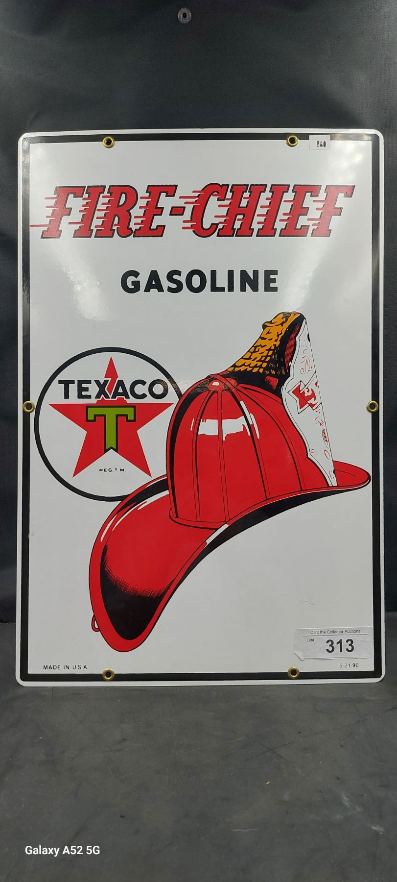 Quality reproduction Texaco Fire Cheir enamled sign 12"x18"