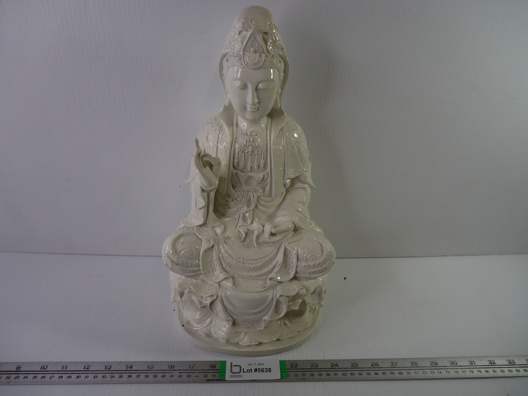 Quan Yin Buddha Sitting on a Lotus Statue-v 15" Tall