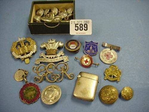 Quantity Assorted Badges, Buttons, Etc. To Include Great Eastern Railway Cap Badge, Railway Strike Sept.1919 Enamel Medallion A.S.L.E. & F, Fish Guard Cap Badge, G.E.R. Buttons, Vesta Case, Essex Regt. Cap Badge £20-30
