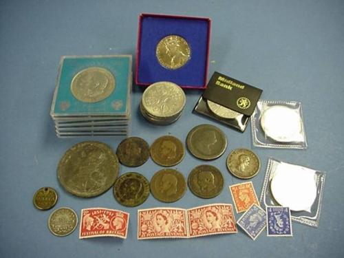 Quantity Assorted Coinage To Include Wellington Commemorative Battle Of Waterloo Medallion, 5 Ca...
