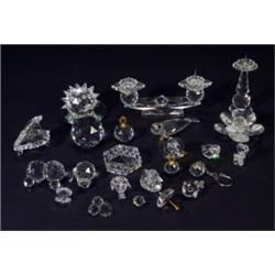 Quantity of Swarovski crystal animals including a hedgehog, seal also a piano, paperweight, columns etc