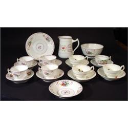 Quantity of Victorian pink lustre and floral enamelled teaware including a T Goode jug, slop bowl, eight assorted cups and saucers and a sandwich plate