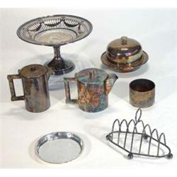 Quantity of assorted silverplate including pierced tazza, muffin dish and cover, toast rack, teapot, etc