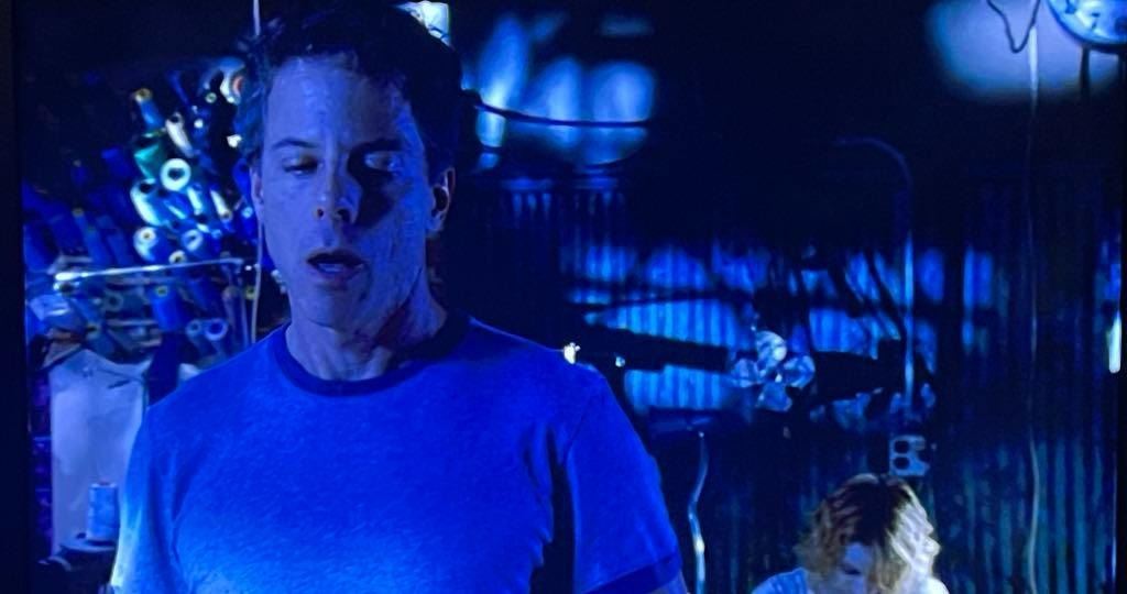 Original bloody short sleeved shirt worn "Lawrence", played by Greg Germann in the John Erick Dowdle directed production of 'Quarantine' (2008), the found-footage horror movie where a television reporter and her cameraman are trapped inside a building quarantined by the CDC, after the outbreak of a mysterious virus which turns humans into bloodthirsty killers.