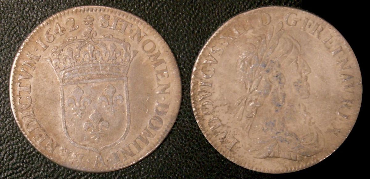 Quart d'écu 3rd type Paris 1642 F-Vf, corroded