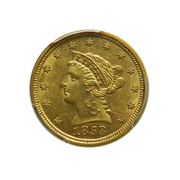 $2.50, 1853. PCGS AU58. Nice example, looks Unc.