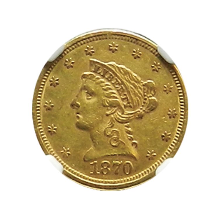 $2.50, 1870. Key date. NGC AU details, cleaned.