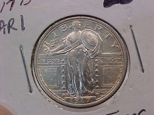 Quarter Standing Liberty 1917D Var 1 AU nice shield