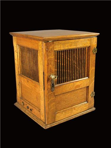 Quarter sawn Oak Cabinet with ventilated front. Four drawers have been added to interior. Excellent refinished condition. 12 inch square X 15 inches tall.