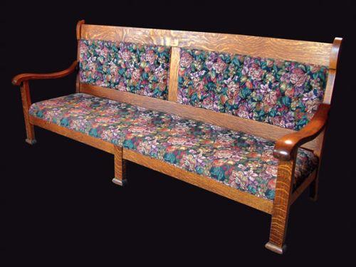 Quarter sawn Oak Courthouse Bench, newly upholstered. Good condition. 96 X 41 X 30 inches.