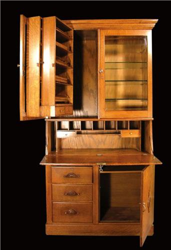 Quarter sawn Oak Doctors Cabinet. Excellent refinished condition. 38 X 74 X 17 1/2 inches.