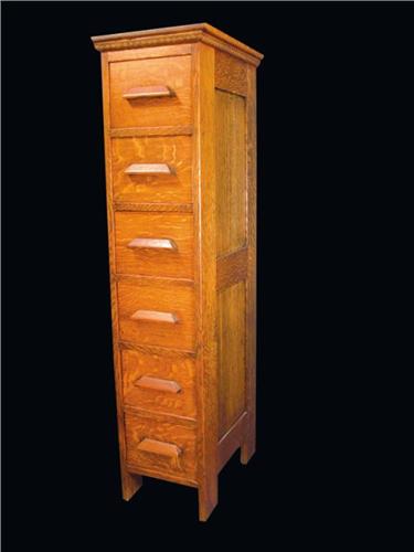 Quarter sawn Oak File Cabinet, egg and dart molding and 6 drawers, very unusual. Excellent refinished condition. 14 X 57 inches.