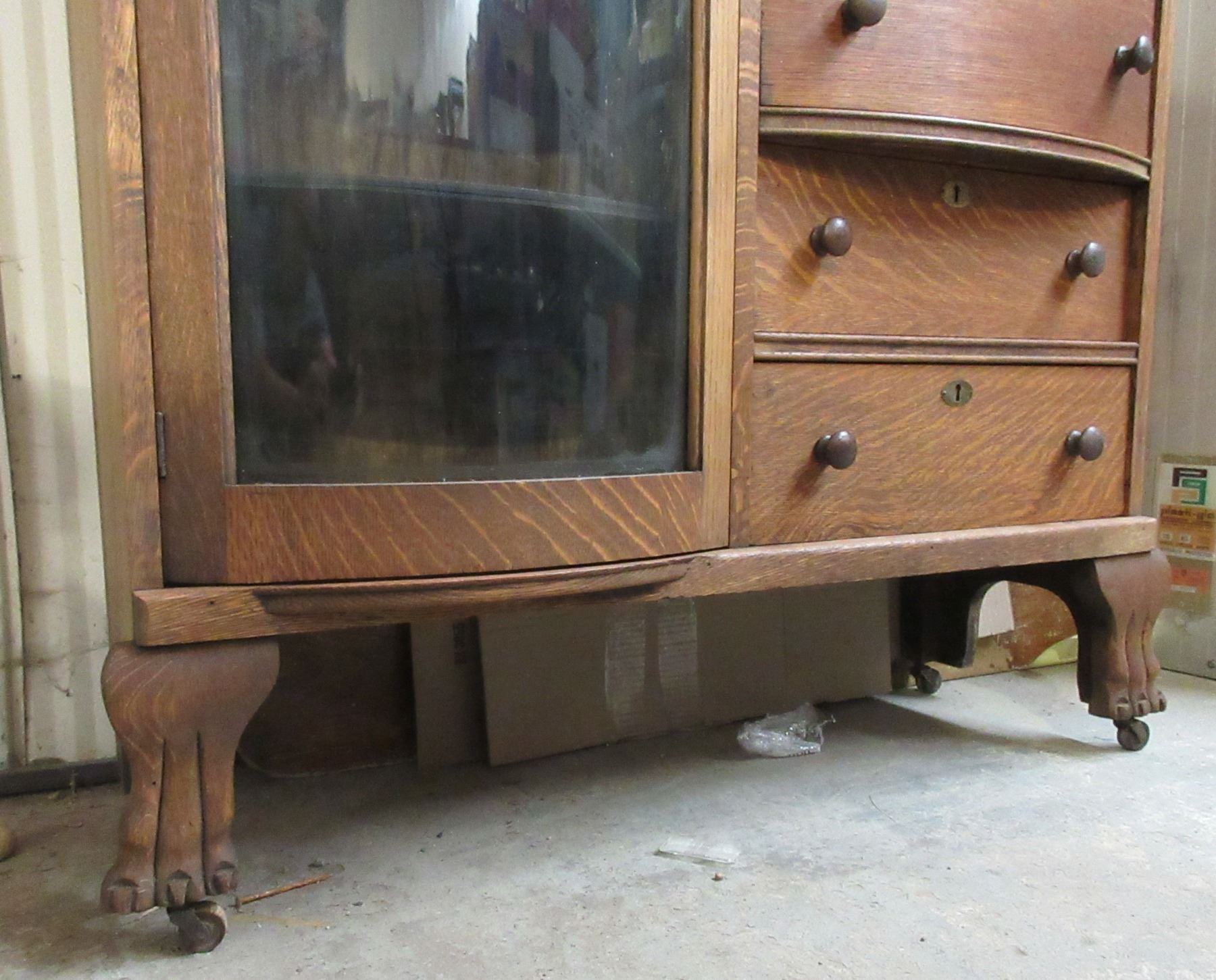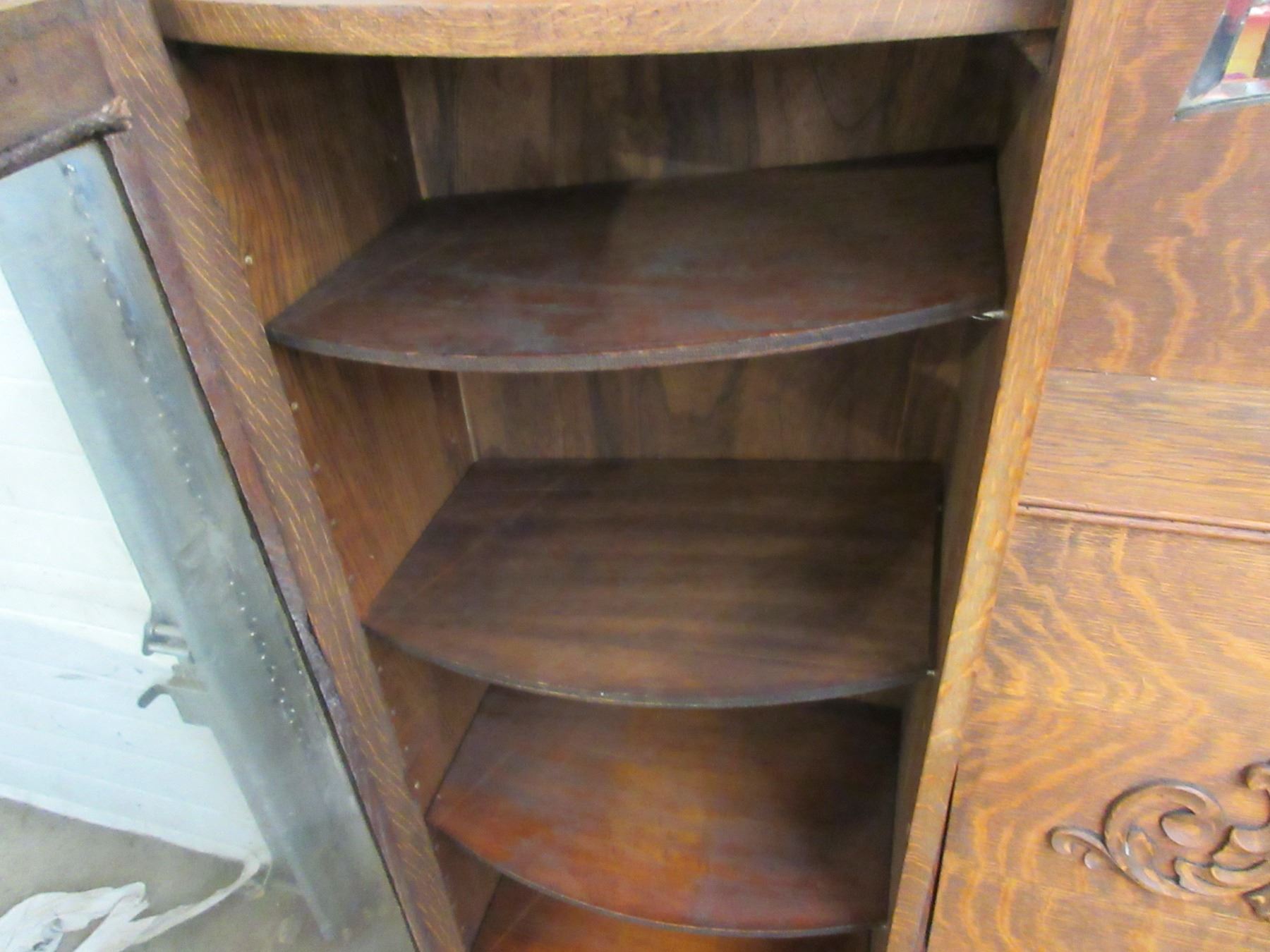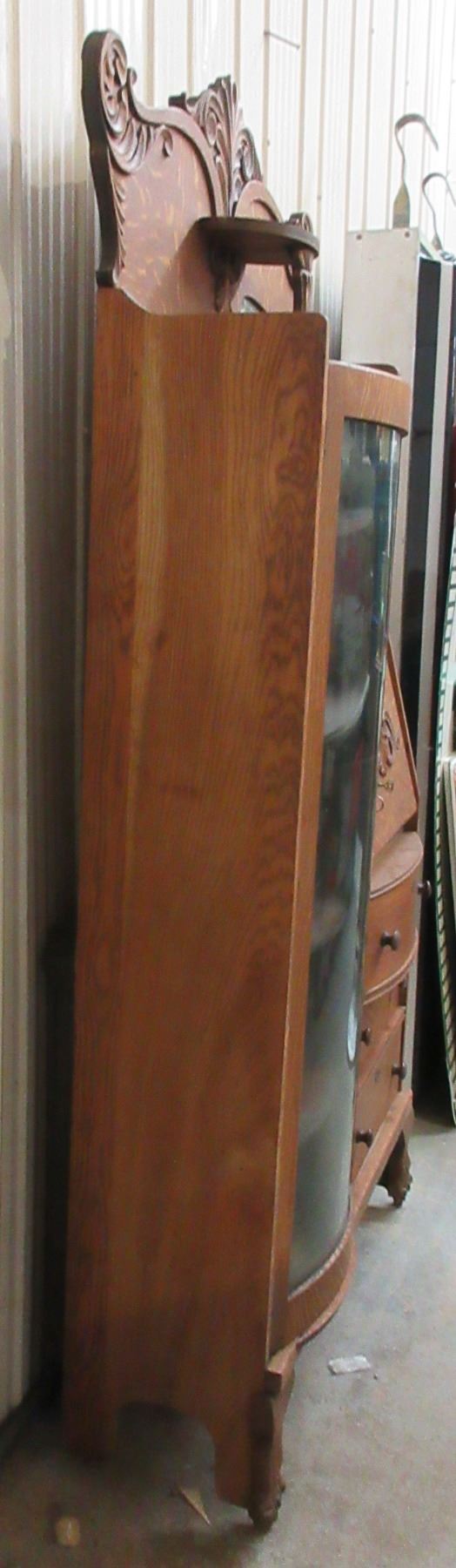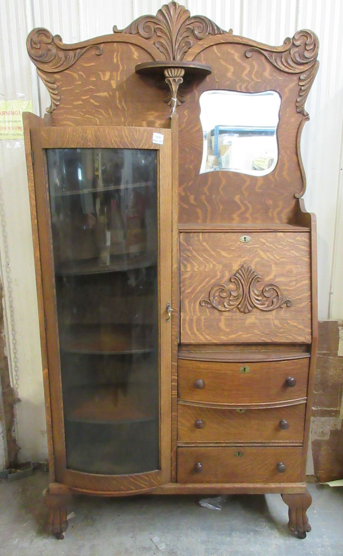 Quarter sawn oak lq curved glass 4 shelf secretary with key
