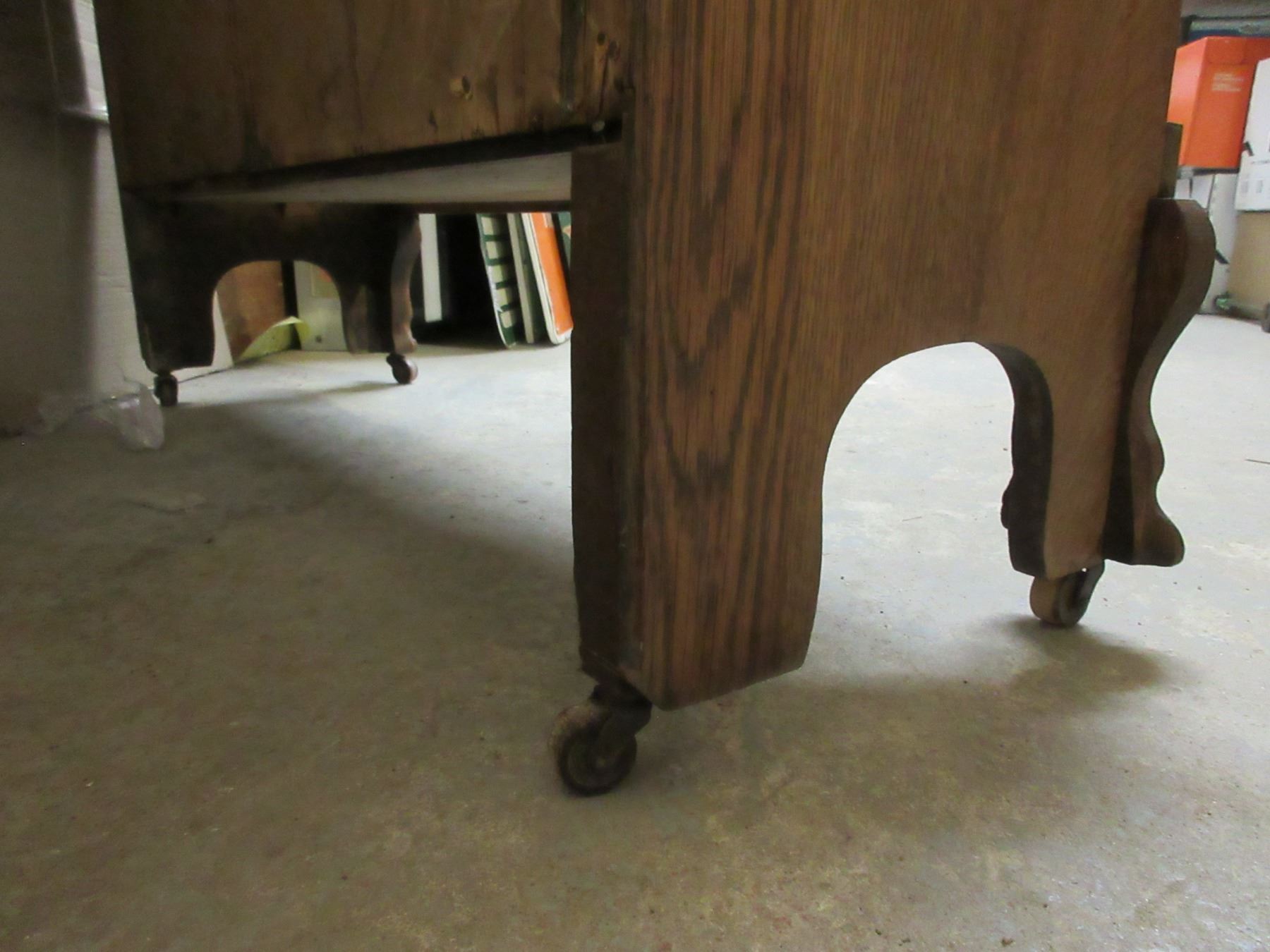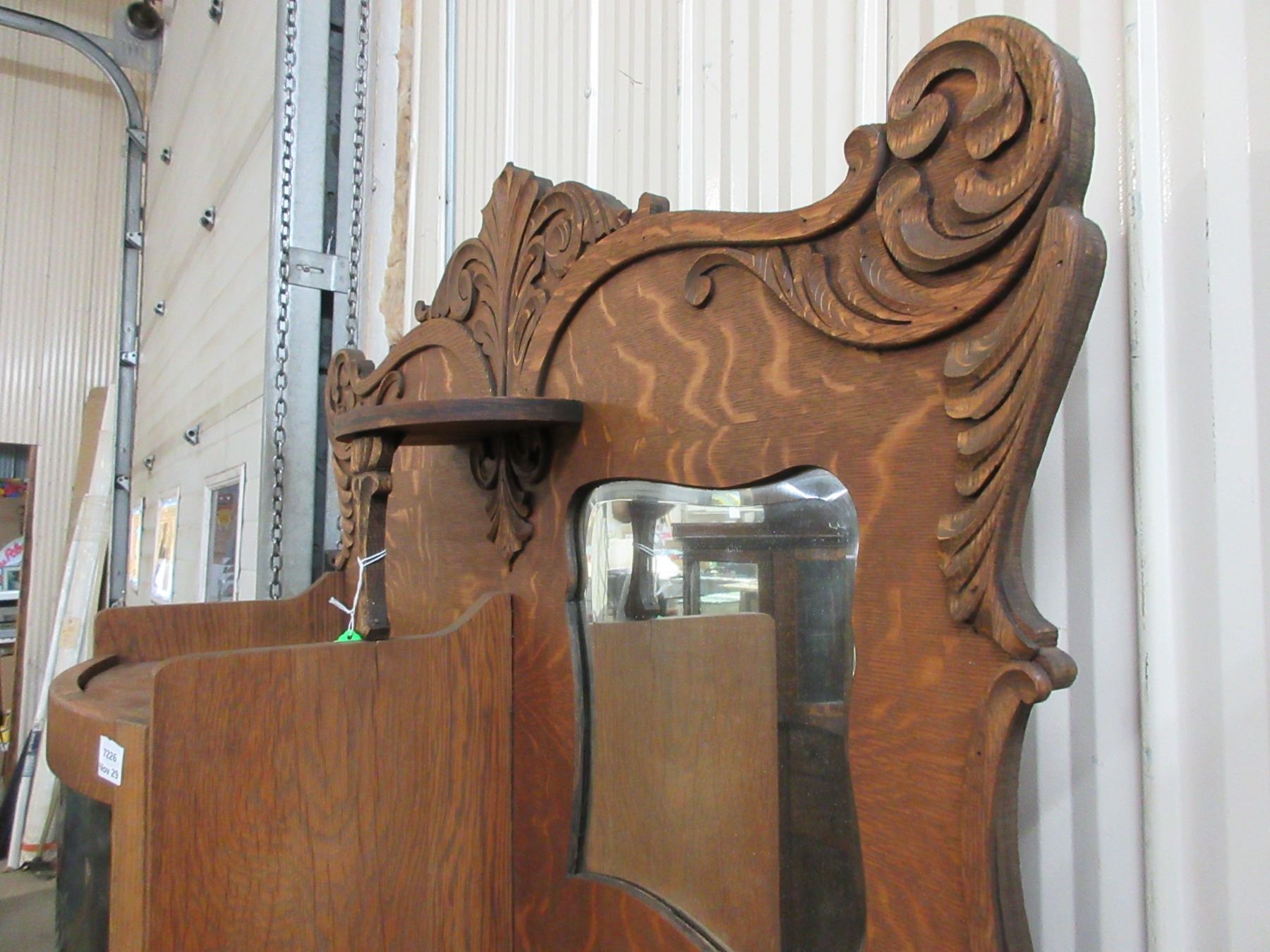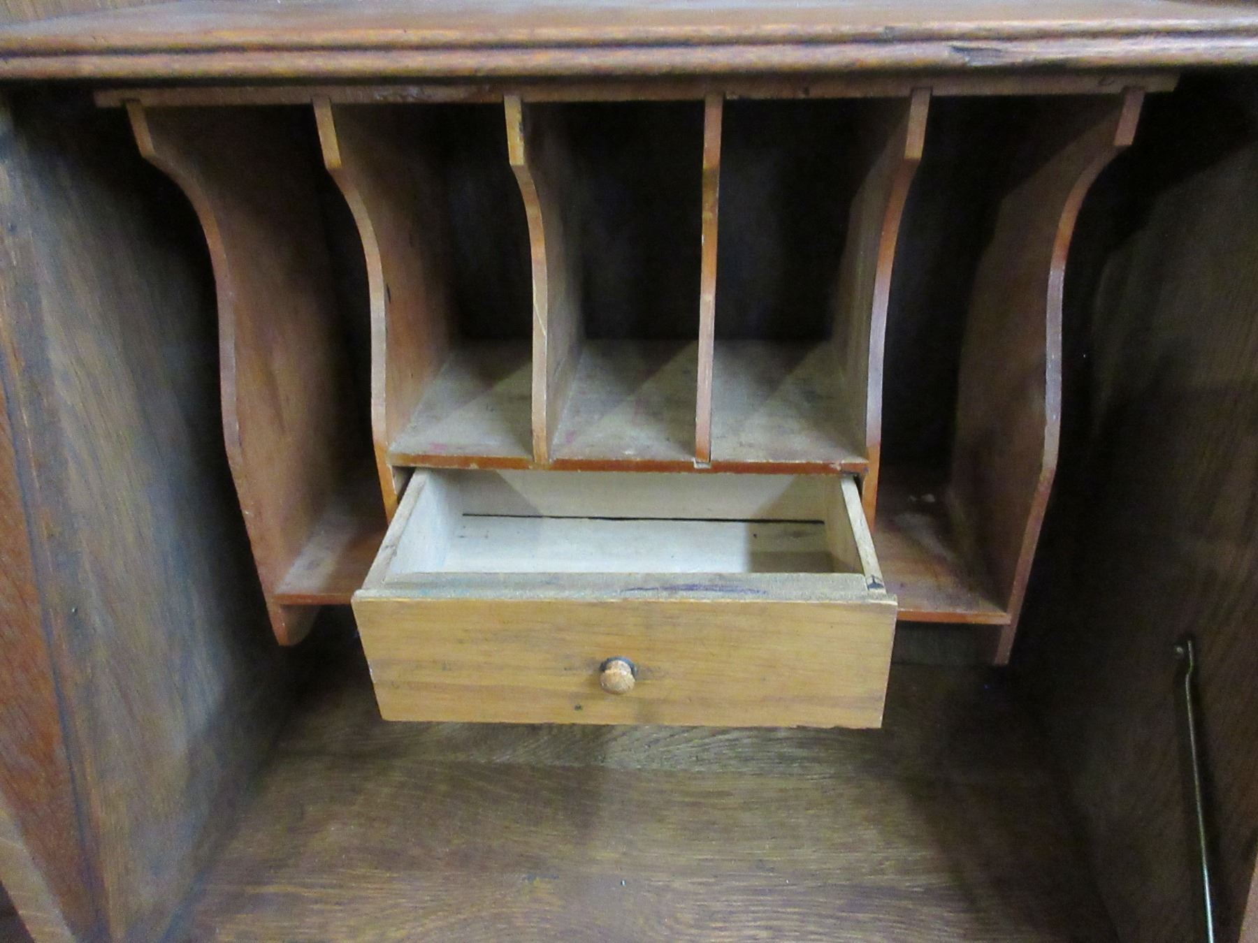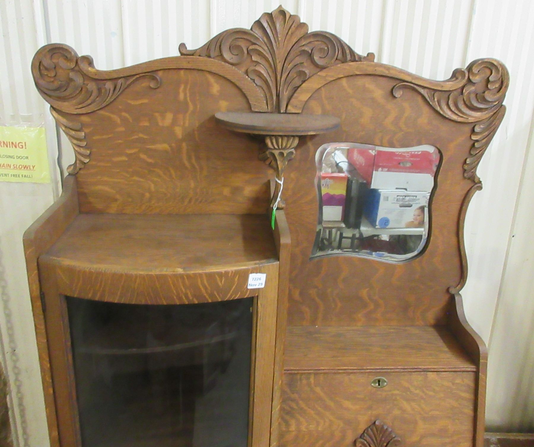 Quarter sawn oak lq curved glass 4 shelf secretary with key