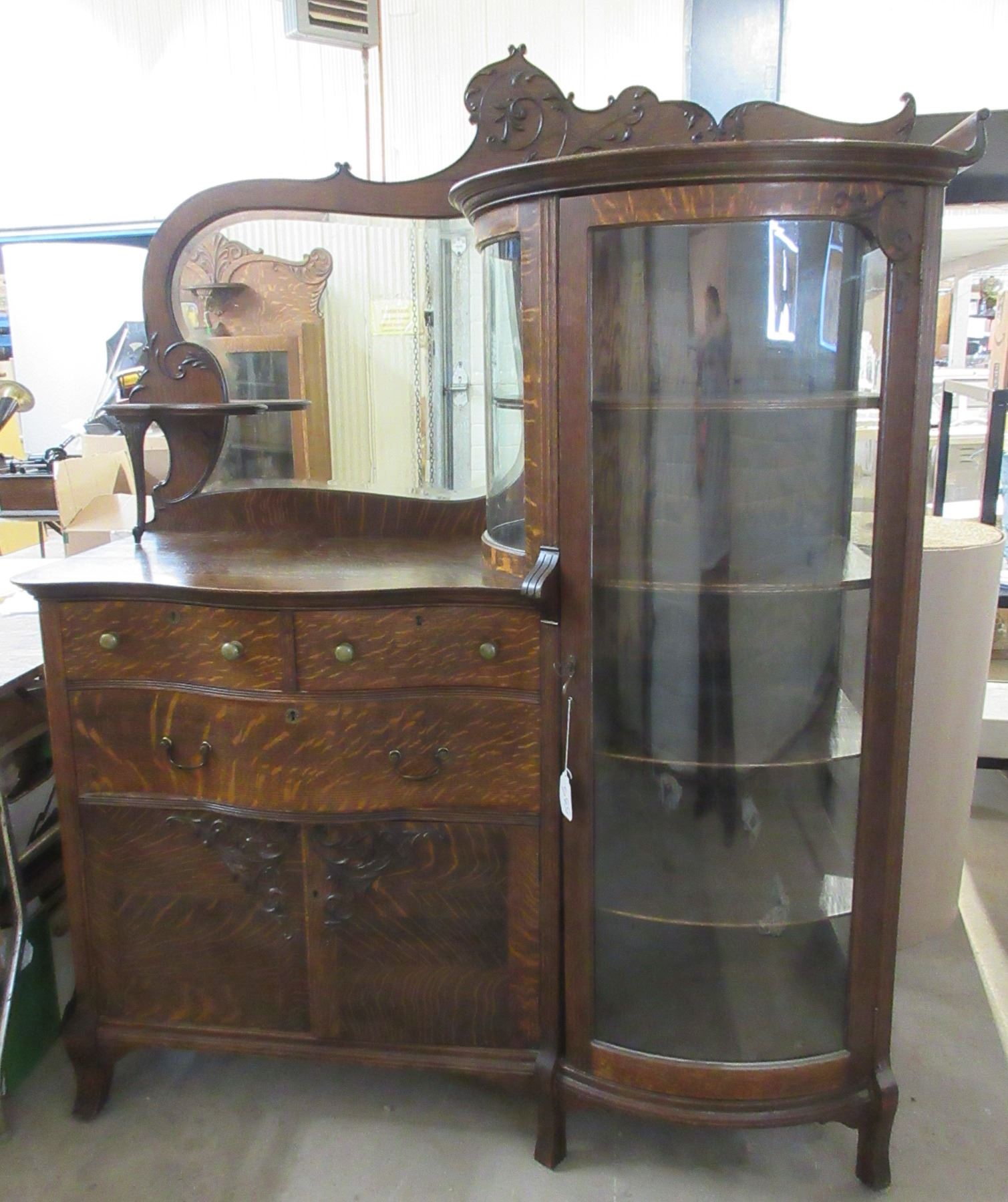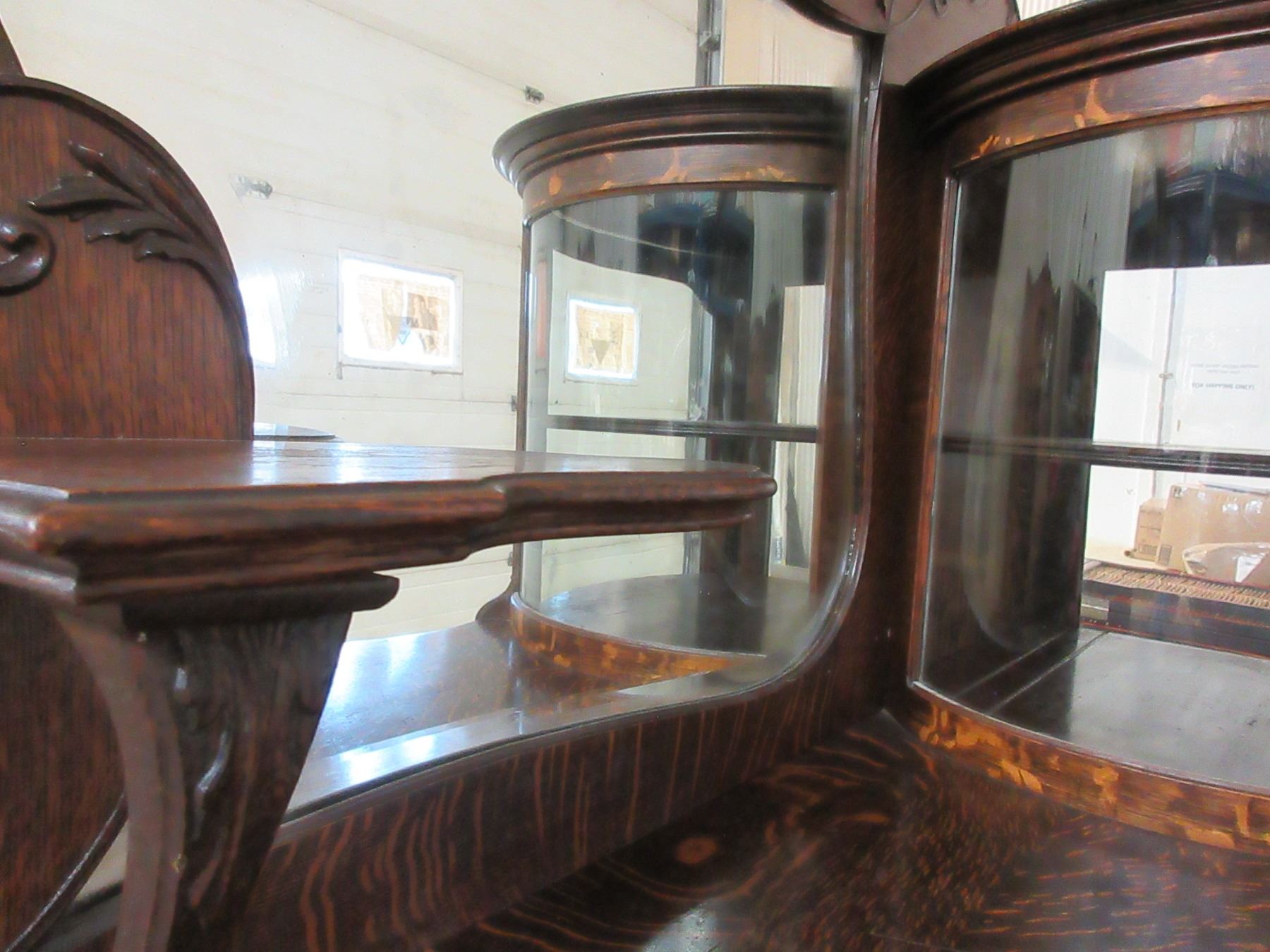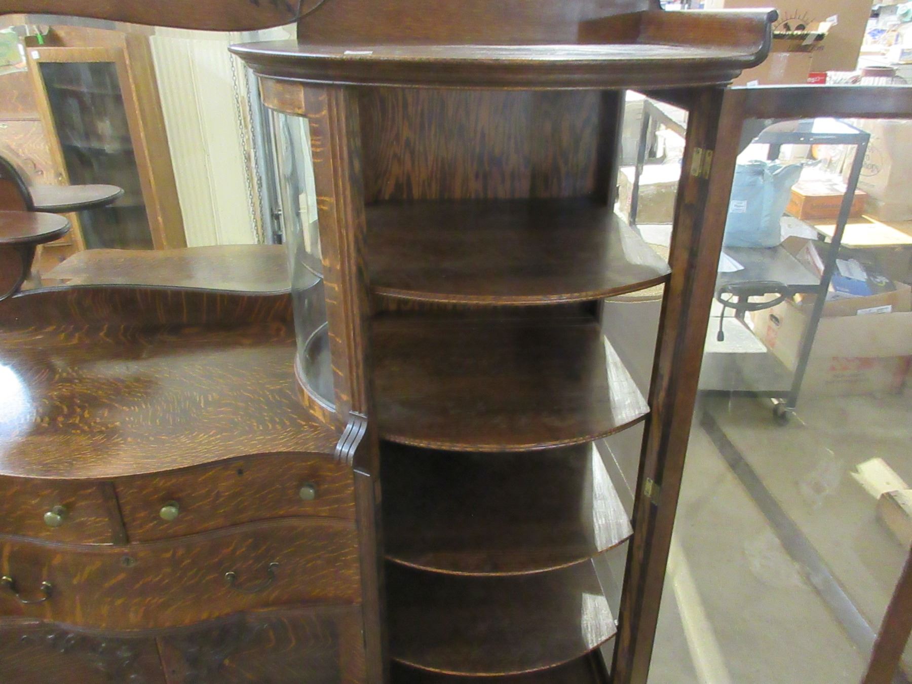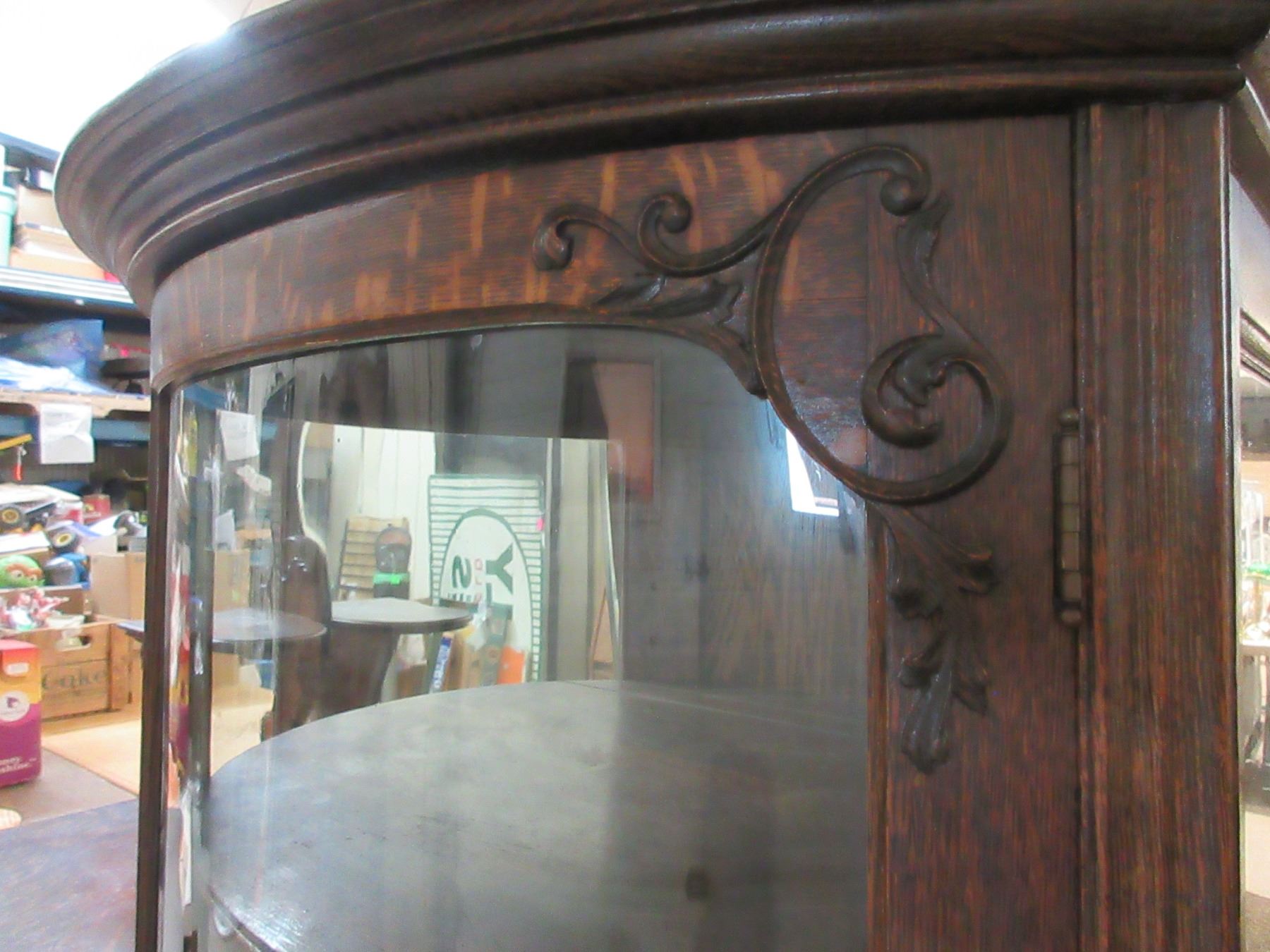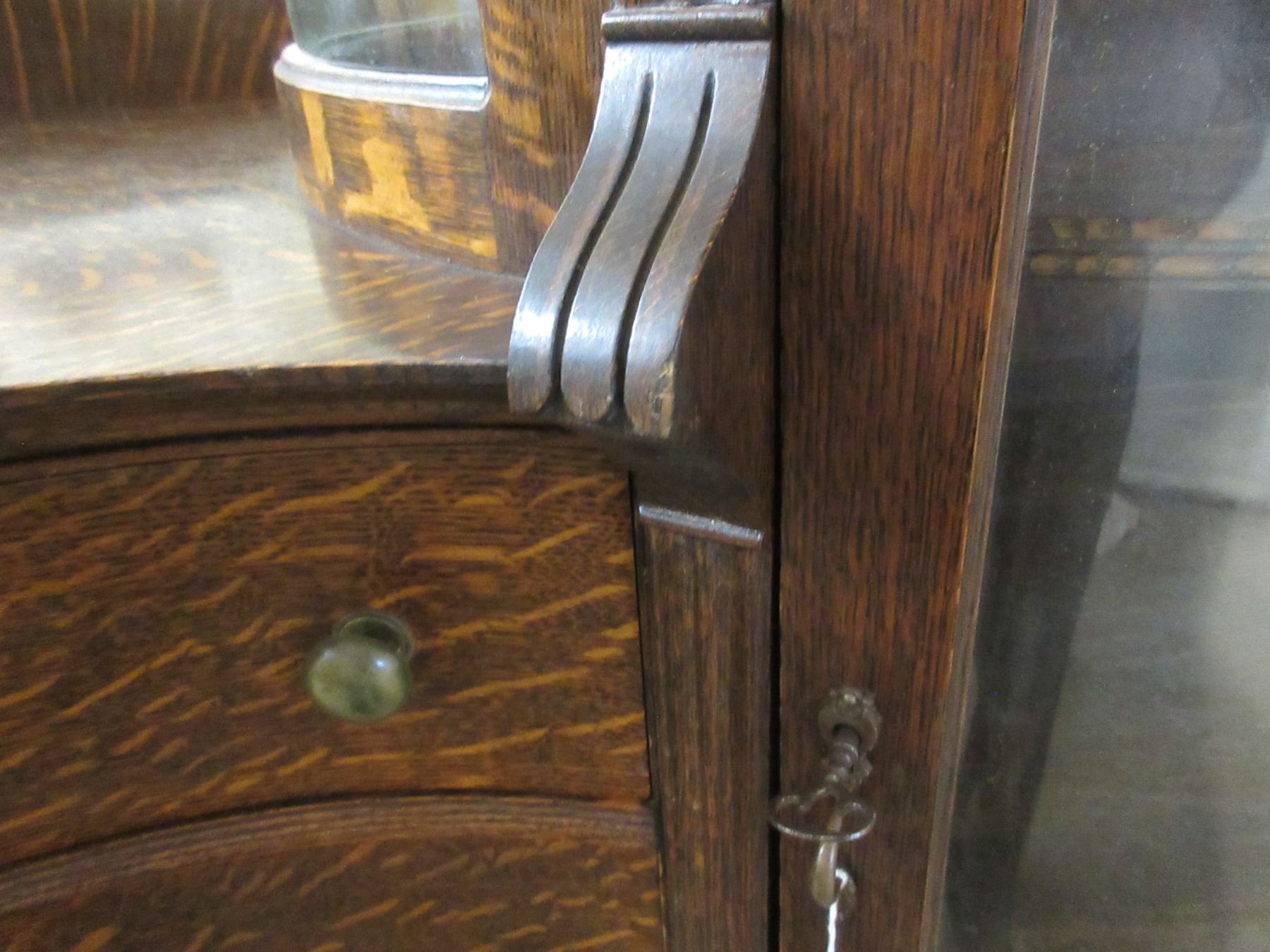 Quarter sawn oak lq curved glass China cabnet with shelves and key original finish