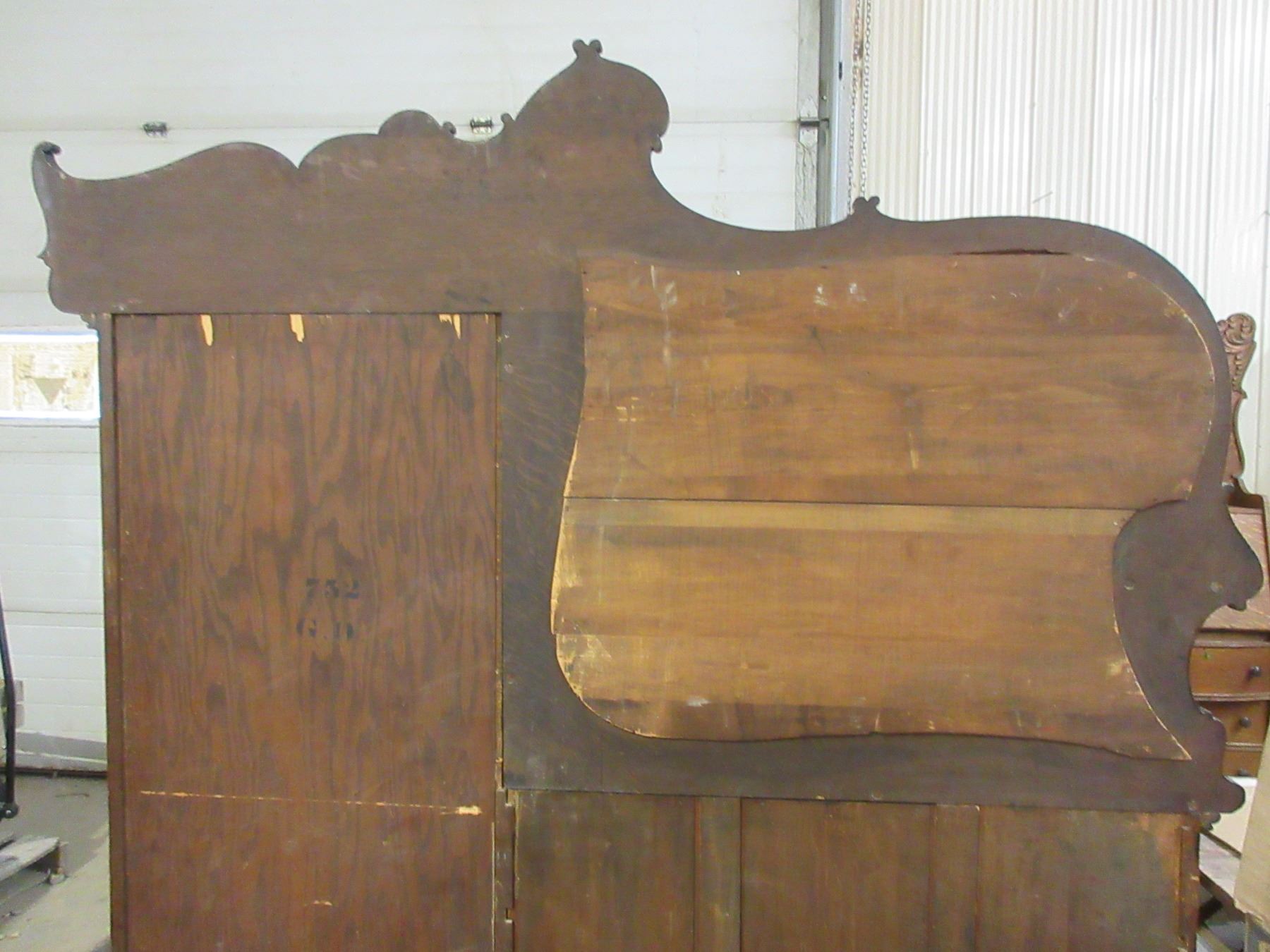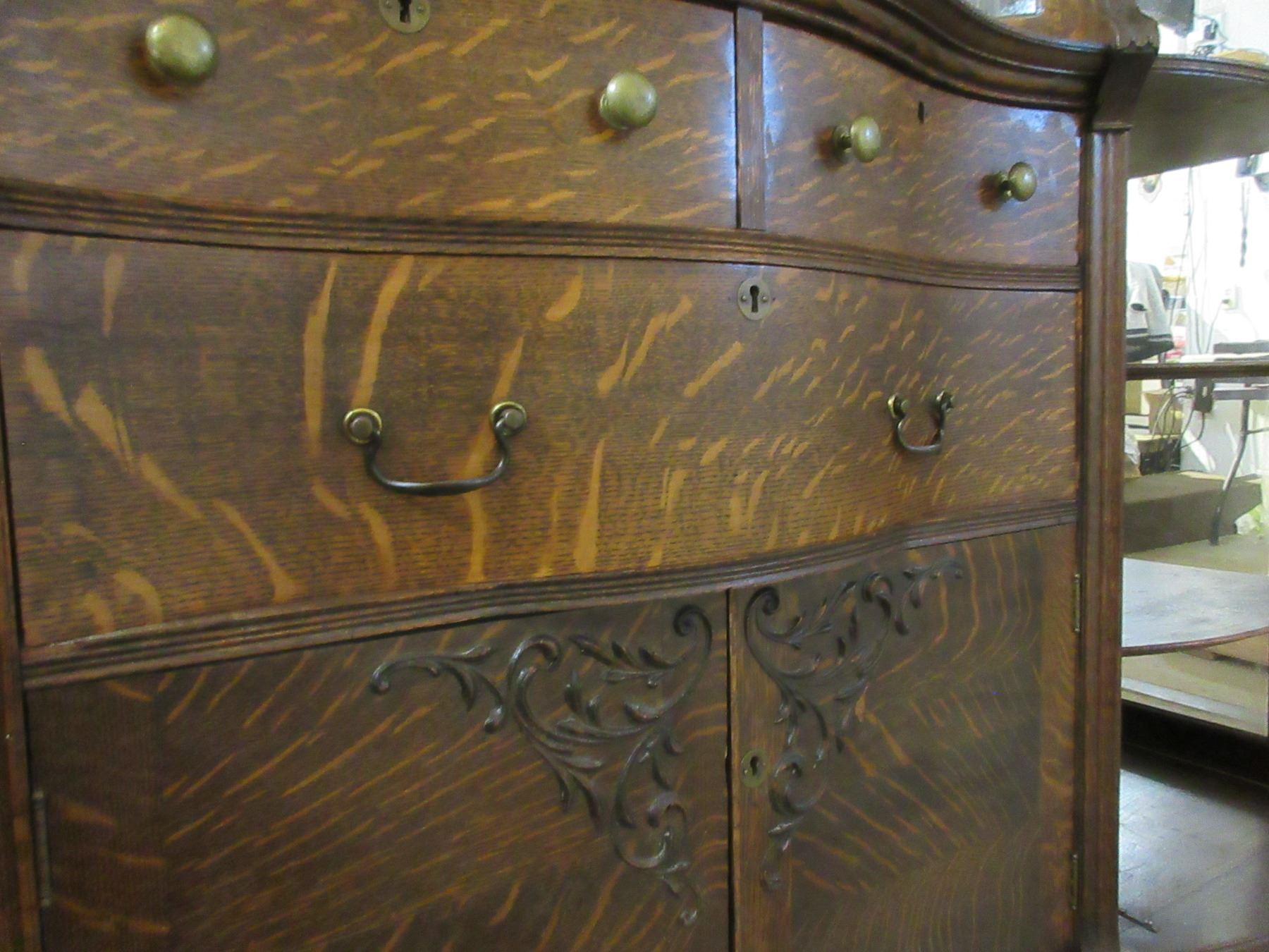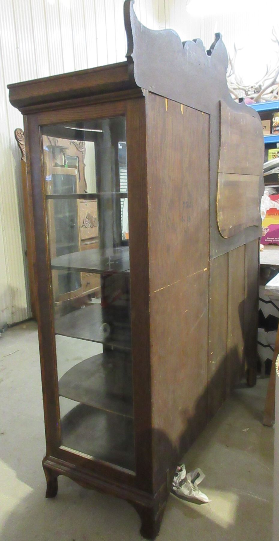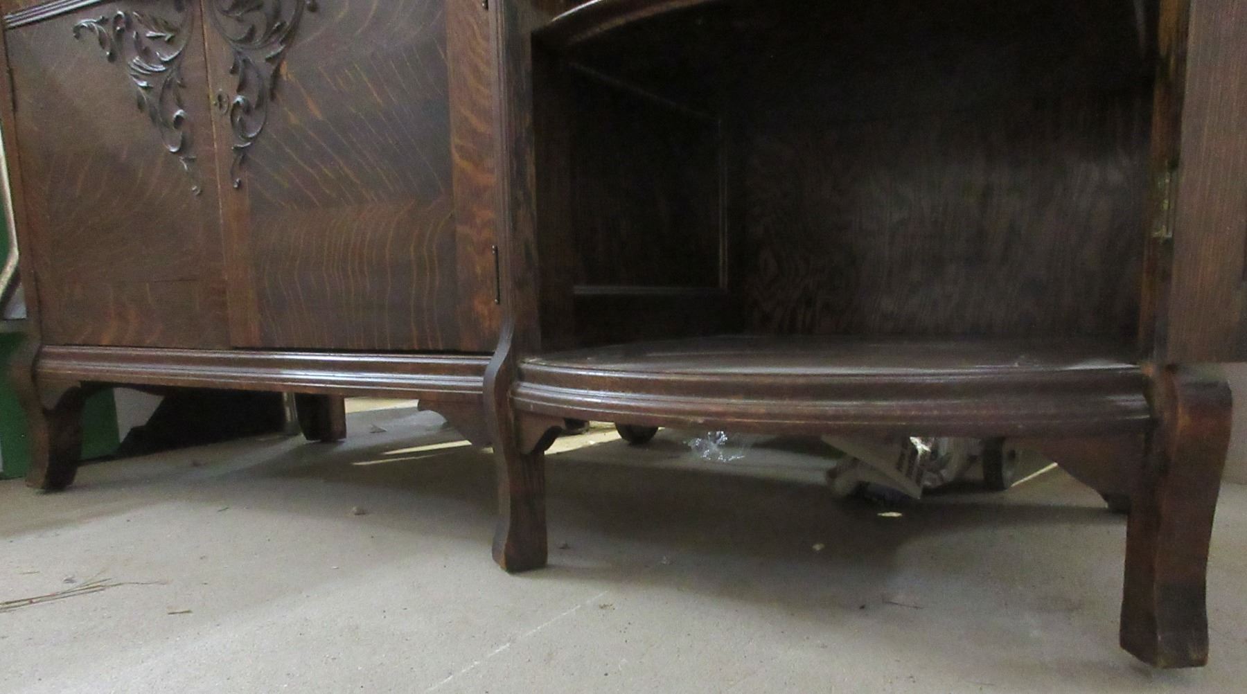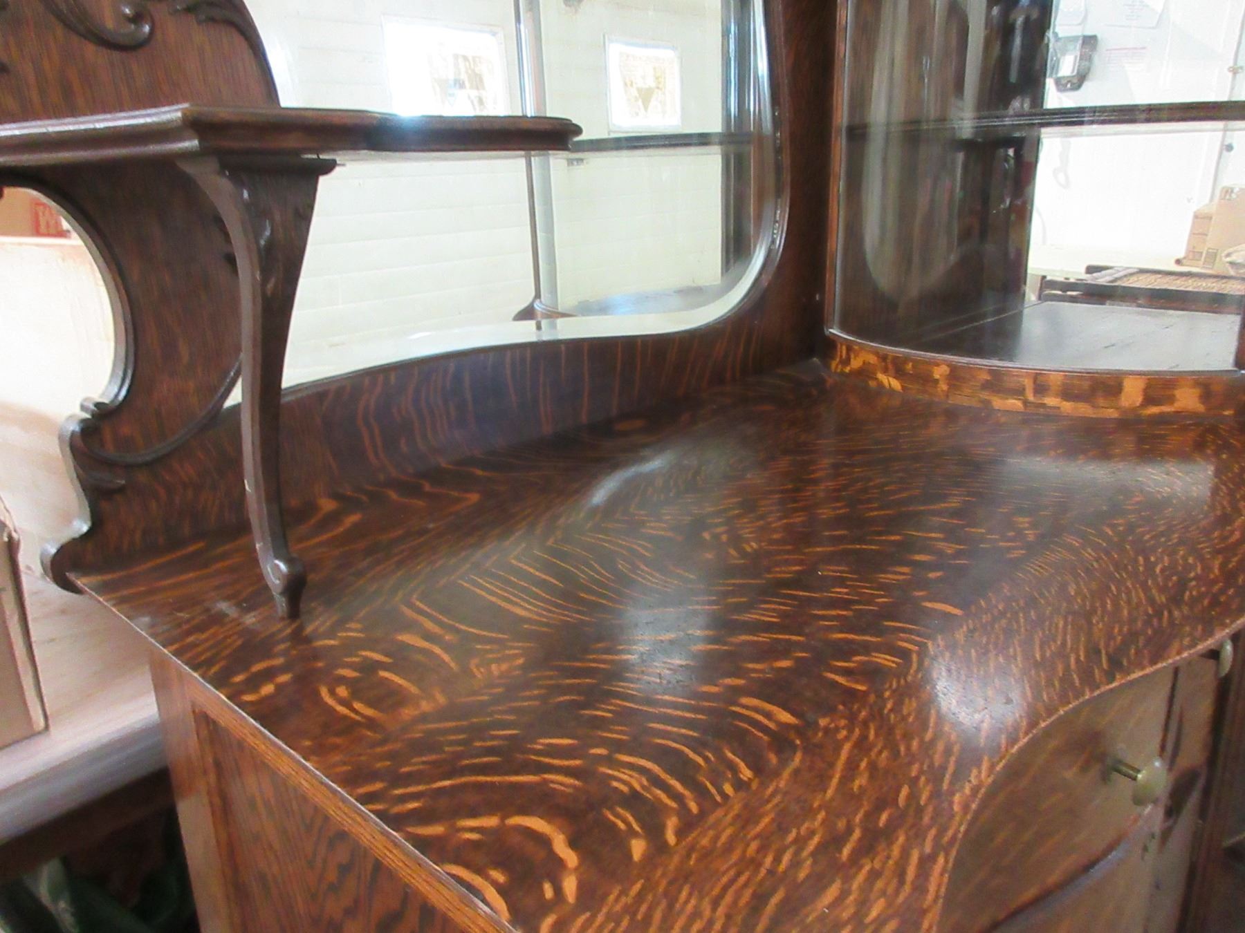 Quarter sawn oak lq curved glass China cabnet with shelves and key original finish