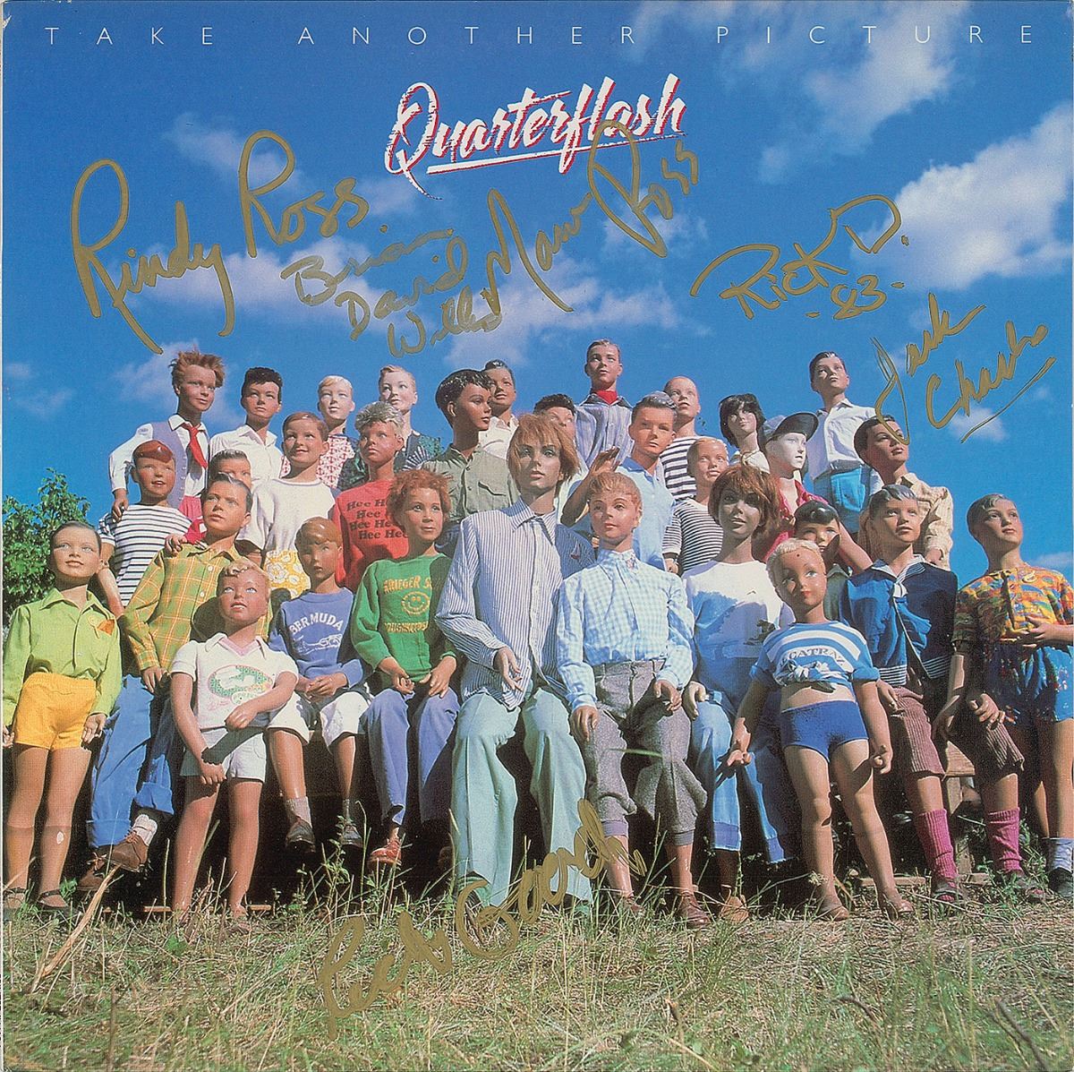 Take Another Picture album signed on the front cover in gold ink by Rindy Ross, Rich Gooch, Brian David Willis, Marv Ross, Rick DiGiallonardo, and Jack Charles. In fine condition. The record is included. Consignor notes that the signatures were obtained at the Fairlawn Hilton prior to the band's show at the Blossom Music Center in Cuyahoga Falls, Ohio.
