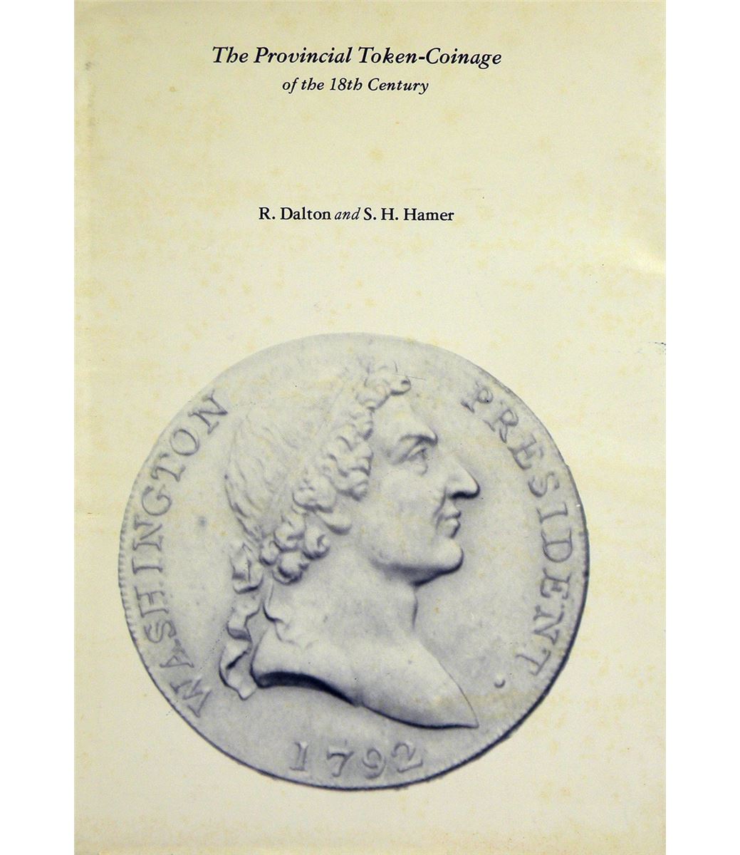 Dalton, R., and S.H. Hamer. THE PROVINCIAL TOKEN-COINAGE OF THE 18TH CENTURY. ILLUSTRATED. Lawrence, 1977 Quarterman reprint. Small 4to, original pale green cloth lettered in black; jacket. 567, (1) pages; illustrated throughout. Jacket a bit spotted, else fine. Still the standard reference. Clain-Stefanelli 13878*. Grierson 252.