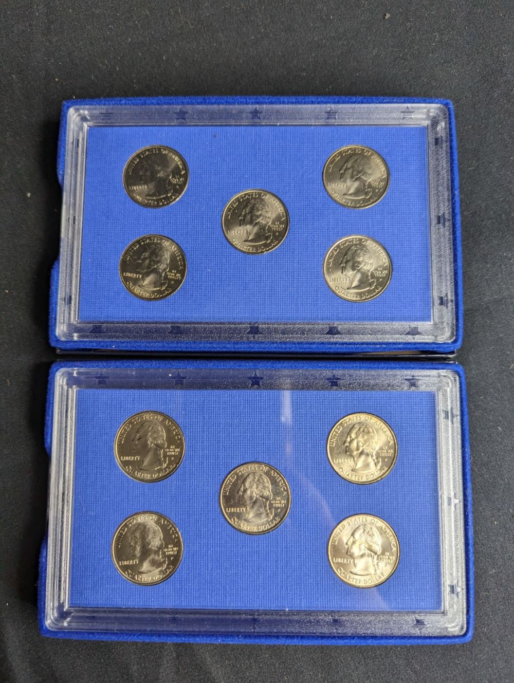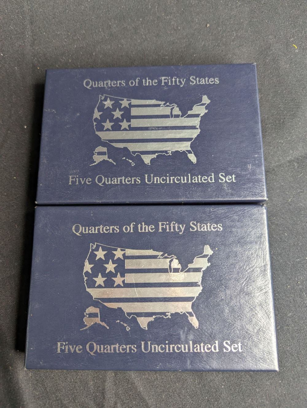 A Quarters of the Fifty States 2001 and 2002 Commemorative Five Uncirculated Coin Box Sets.A Collectable Set for anyone!