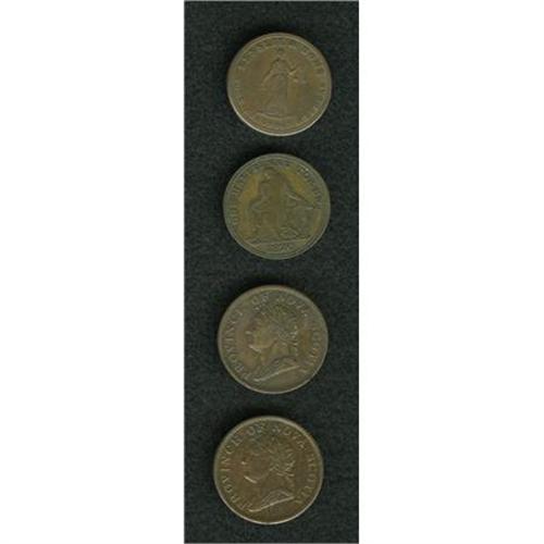 <B>Quartet of Canadian Breton Tokens.</B></I> This lot contains the following uncertified Canadian Breton tokens: <B>B-894, </B></I>1820 Trade and Navigation halfpenny; <B>B-718, </B></I>Lessile & Sons halfpenny; and two 1832 <B>B-871</B></I> halfpennies.<BR><BR><b>Shipping:</b> Coins & Currency (<a target="_blank" href="http://www.heritageauctions.com/common/shipping.php">view shipping information</a>)