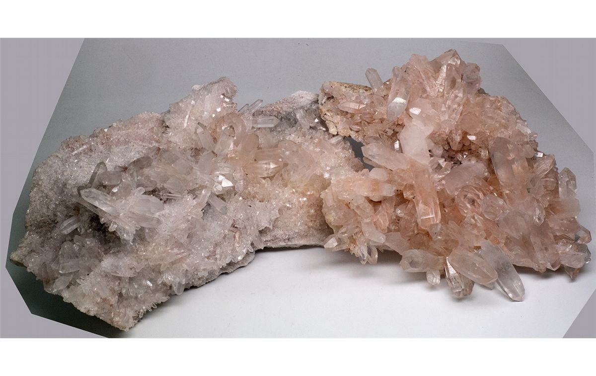 Lot of 2: spectacilar rose and pale white crystal formations. Many of the crystals measure over 2" long, and feature the classic multi-faceted cylinders. This pair is a free-form slab that measures approx. 11"x10", and weigh almost 6 pounds each. Very lovely examples. - HKA#65927