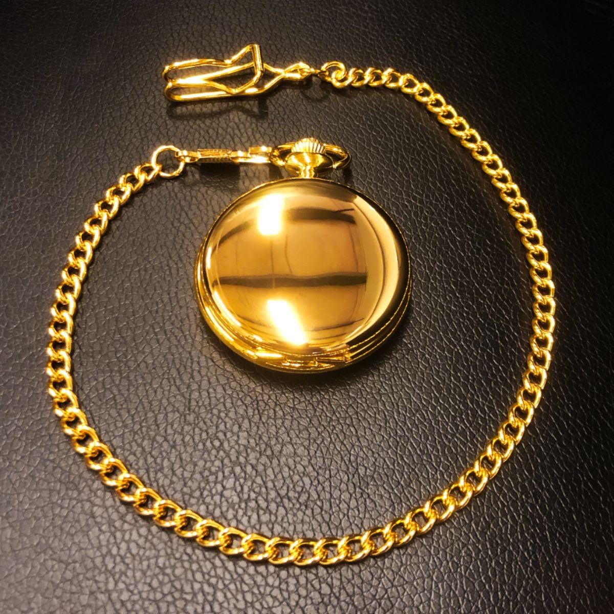 A Quartz Flip Front Gold Tone Pocket Watch On Chain. View Photos For Further Details.