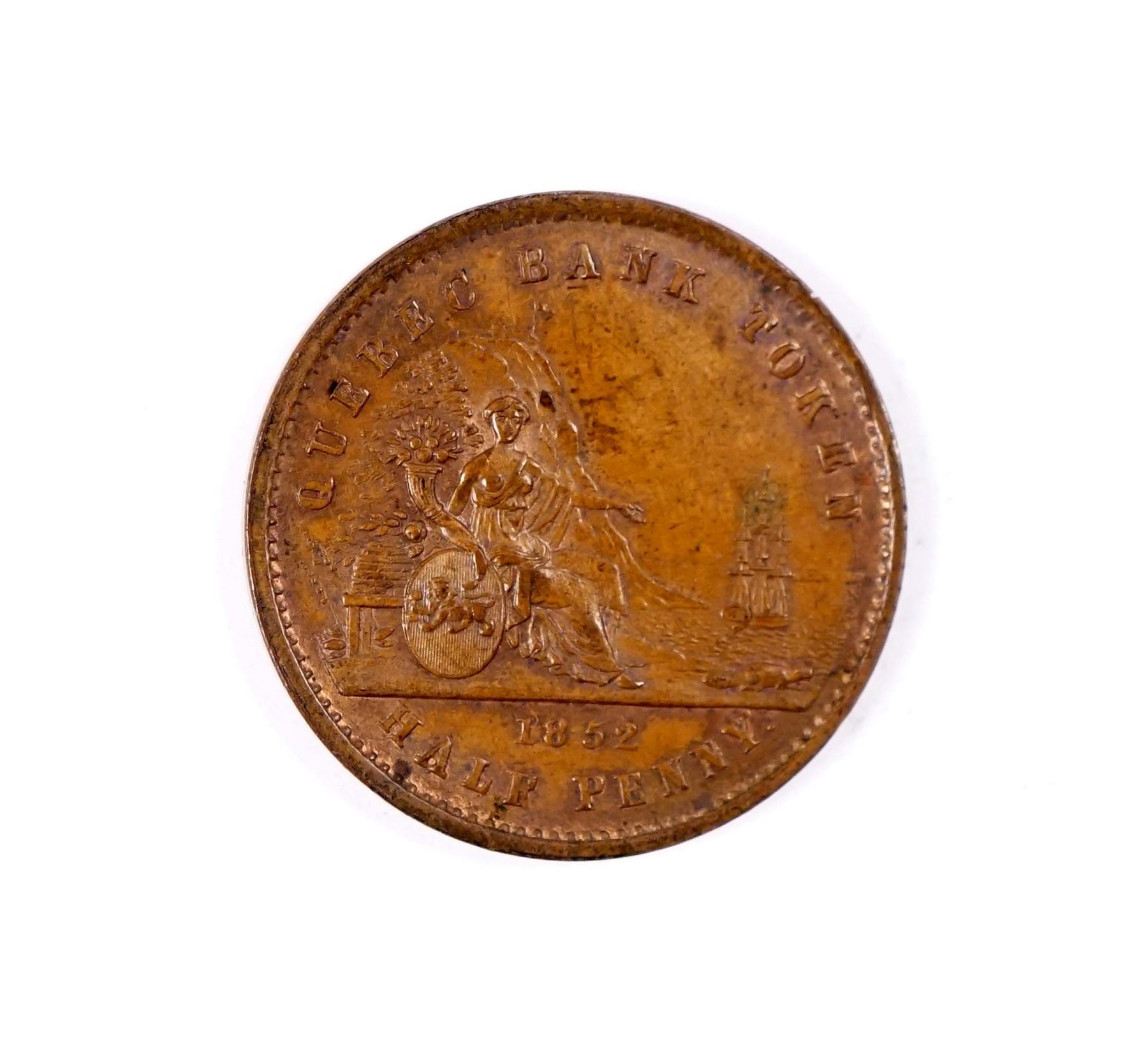 Quebec Bank 1852 Halfpenny Token AU, # PC-3 with some peripheral lustre