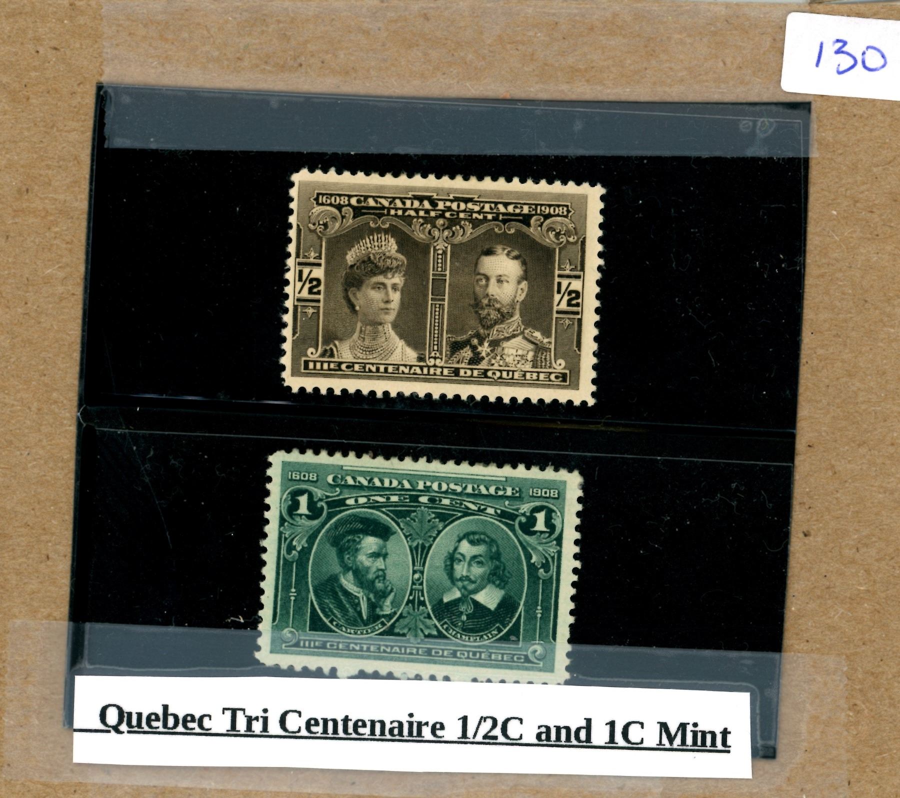 Quebec Tri Centenaire 1/2C and 1C stamps mint