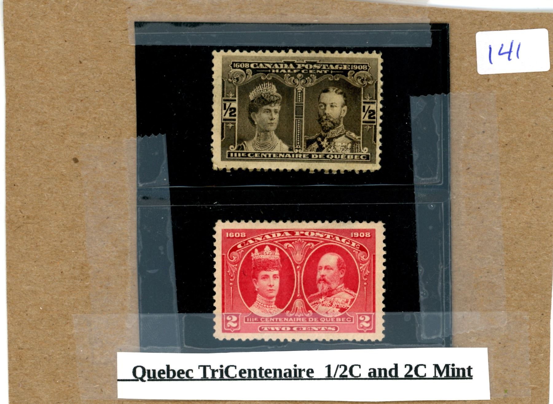 Quebec Tri Centenaire 1/2C and 2C stamps mint