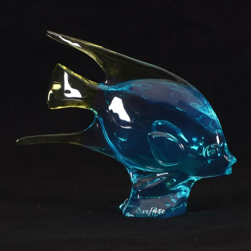 "Queen Angel Fish" is a limited edition lucite sculpture, numbered and engraved with Wyland's official signature. Includes Certificate of Authenticity. Measures approx. 3" (depth) x 7" (height) x 8.5" (length); 2 lbs. (weight).