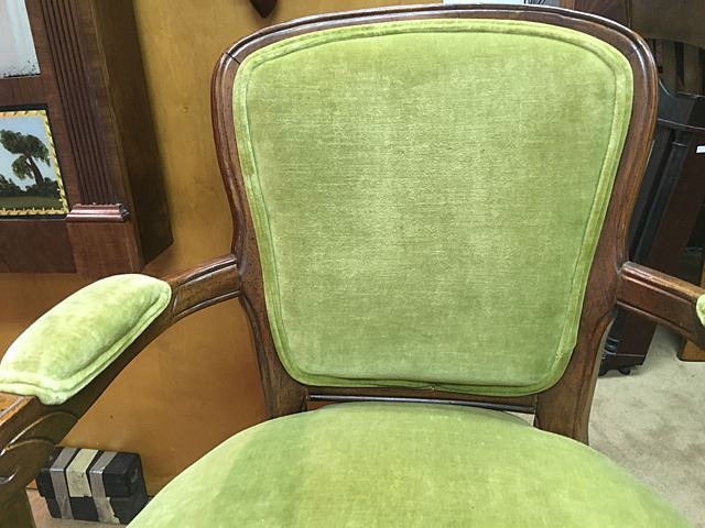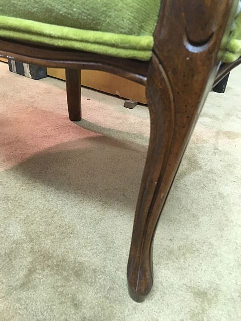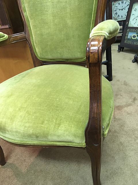Nice velvet upholstered arm chair, Queen Anne legs.
