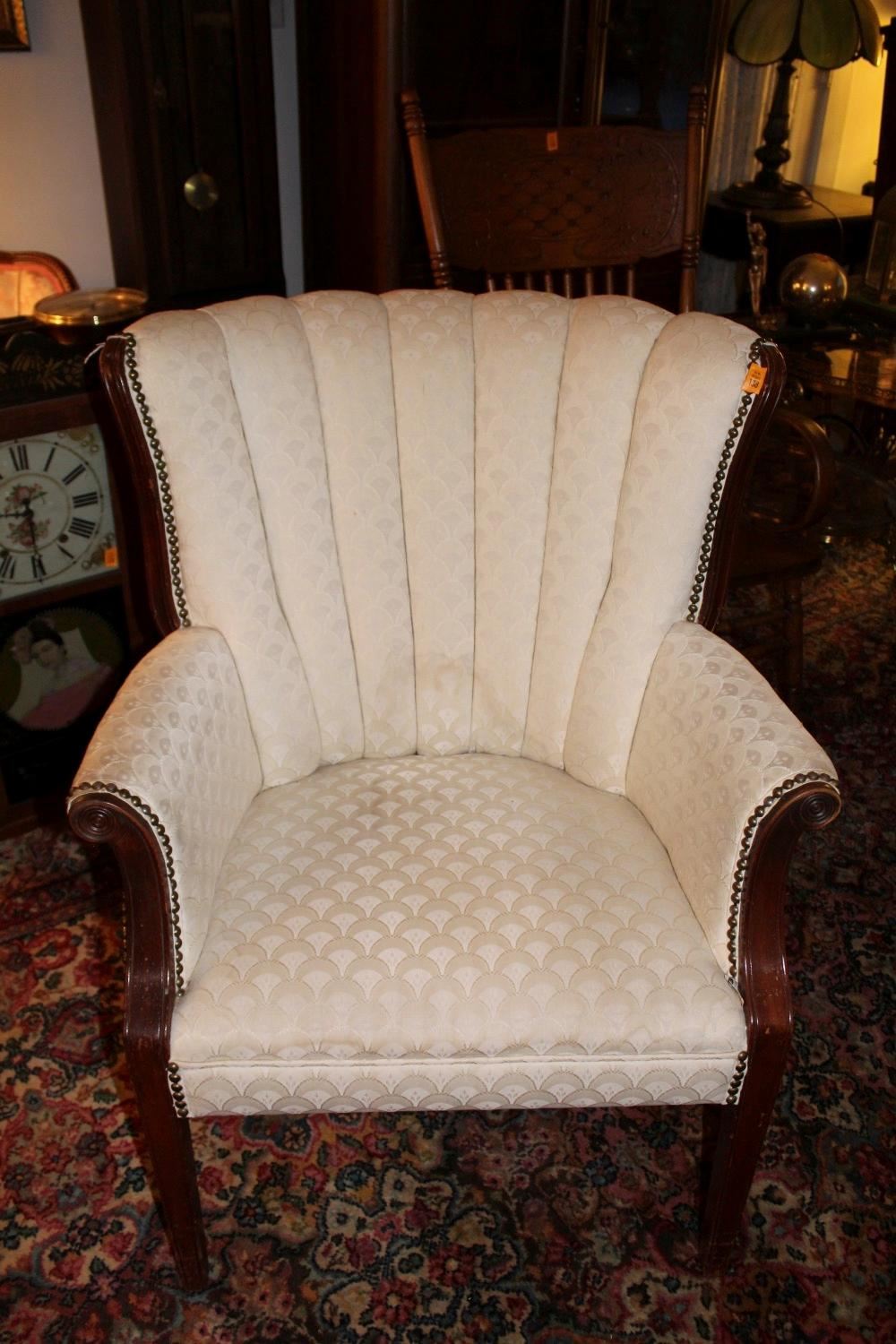 Queen Anne Chair with fan back, brass tacks, measures approx. 35 inches tall x 28 inches wide x 20 inches deep