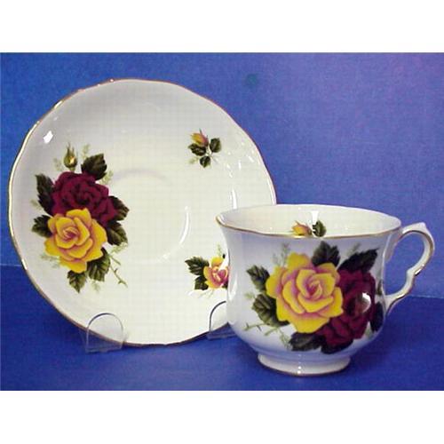 Beautiful cup & saucer set - Made by Queen Anne - Fine Bone China - England - Lovely Burgundy and Yellow Roses - Very good condition - Free of damage - Buyer please pay 7.30 for ship & insce - We welcome Money Order - Thanks!