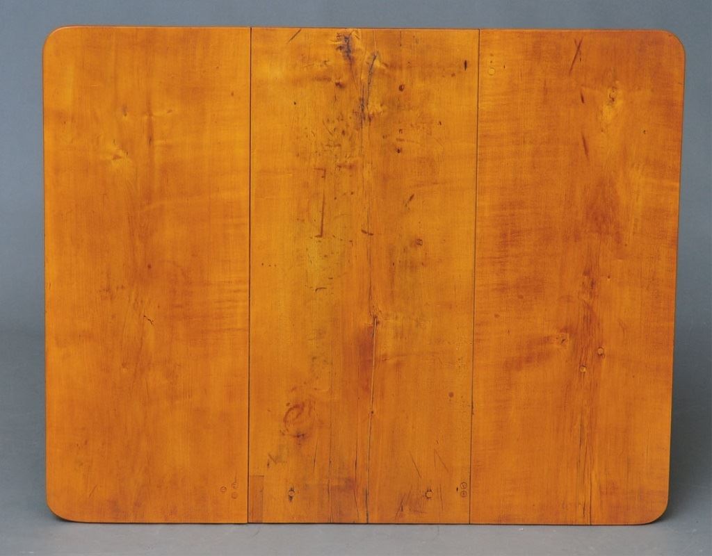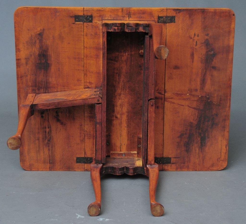 CONDITION REPORT: refinished, pieced section of pad on one foot, small patch at hinge mount on top, narrow 14" spline repair to split on top