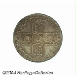Queen Anne Shilling 1707, S-3610. After Union issue. 3rd bust. MS63 PCGS. A rare date and a beauty of a coin, showing original silvery gray surfaces and, on the reverse, splashes of gold toning. Well struck on balance, with some typical doubling on the queen's profile.From the Osage Collection. Important notice: Heritage usually auctions material at the rate of 200-250 lots per hour. On some occasions eBay Live bid software or the Internet may not be able to keep up with the pace of the auction. We recommend placing a realistic absentee bid now as insurance to avoid disappointment. Occasionally the auctioneer may eliminate or reject an eBay Live bid, and the auctioneer may also reopen a lot after the close of the eBay live bidding (usually because we missed an audience bid), and may reject your bid even if it shows you as the winning bidder. By bidding via eBay Live, you agree that Heritage may award the lot to another bidder at its sole discretion under the circumstances described above or any other reasonable circumstances. Also please note that all Heritage lots purchased through eBay Live carry a 20% Buyer's Premium. Please make sure you read the Terms and Conditions before you bid.