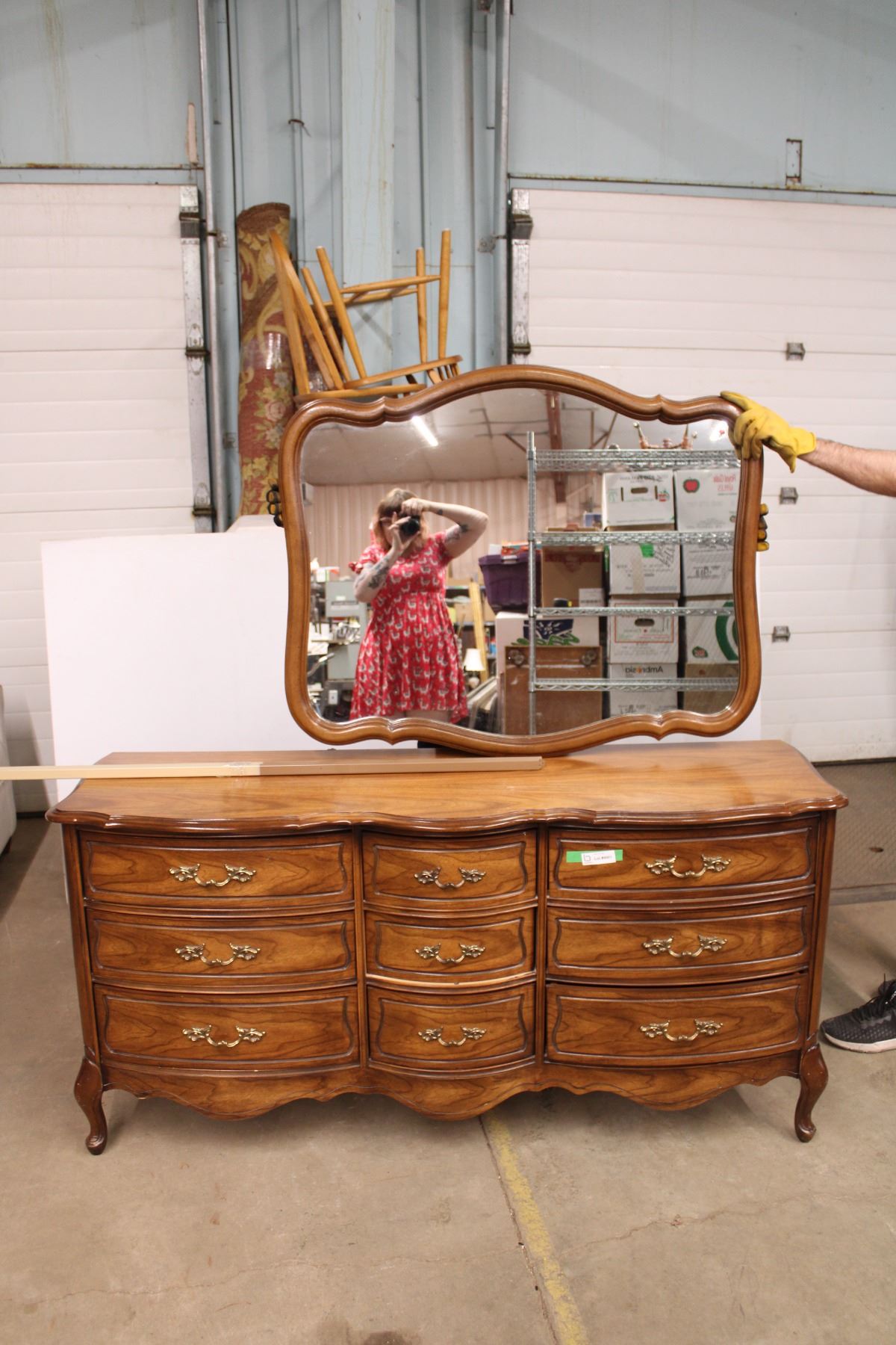 *Queen Anne Style Dresser with Mirror - 64" x 19" x 32"