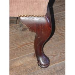 Queen Anne style wing chair with stretcher base. Measures 47" tall to top of back and 17 1/2" tall to top of seat.