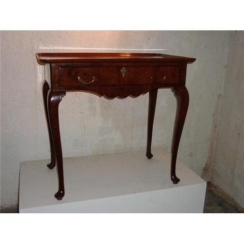 Queen Anne tea table of mahogany and oak. Central drawer above a beautifully carved apron, the whole standing on Queen Anne cabriole legs.