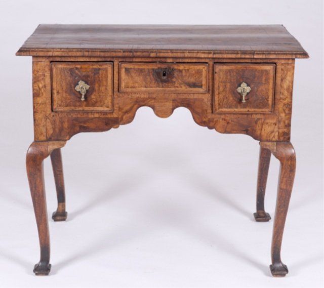 An English Queen Anne walnut three drawer side table. First quarter 18th century. This piece is being re-offered due to non-payment by purchaser. 28"h x 33"w x 20"d.