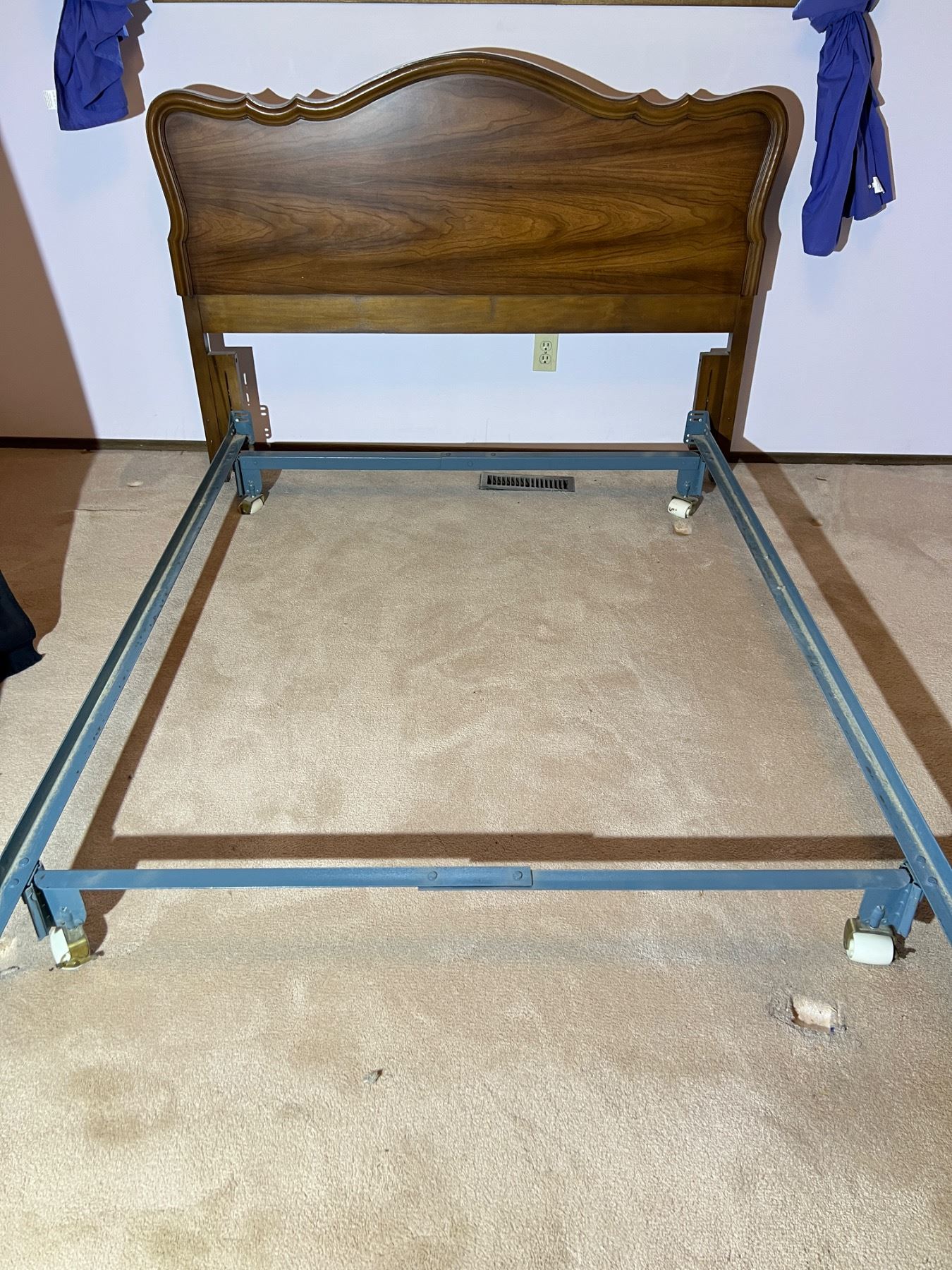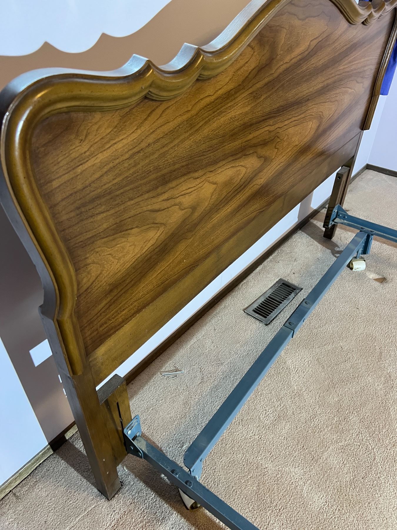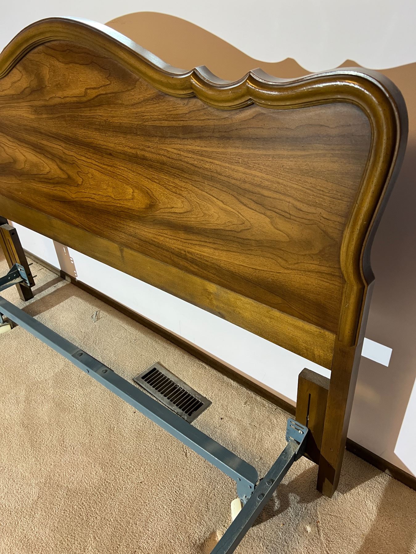 The wooden headboard has some small scuff marks, Measures 73"L x 60"W x 44"H