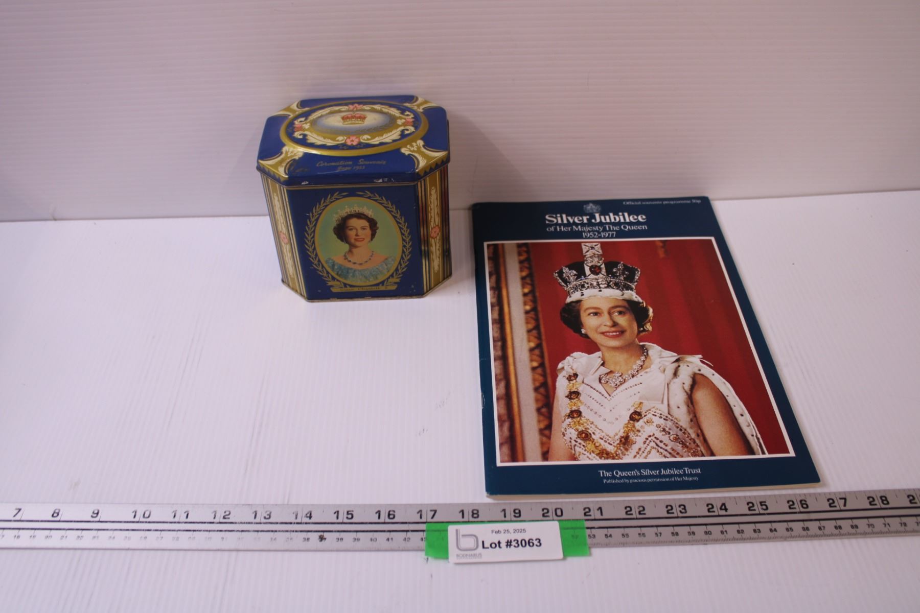 Queen Elizabeth Coronation Collector Tin & 1977 Silver Jubilee Program Booklet