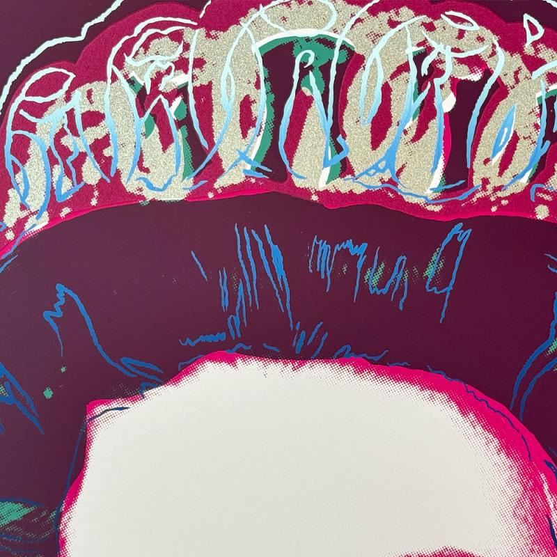Andy Warhol "Queen Elizabeth II of the United Kingdom (Diamond Dust)" is a limited edition silk screen print on museum board from Sunday B Morning featuring the works of Andy Warhol. The piece is stamped in blue on the back with "Published by Sunday B. Morning" and "fill in your own signature" and is accompanied by a certificate of authenticity. Measures approximately 38" x 30".
